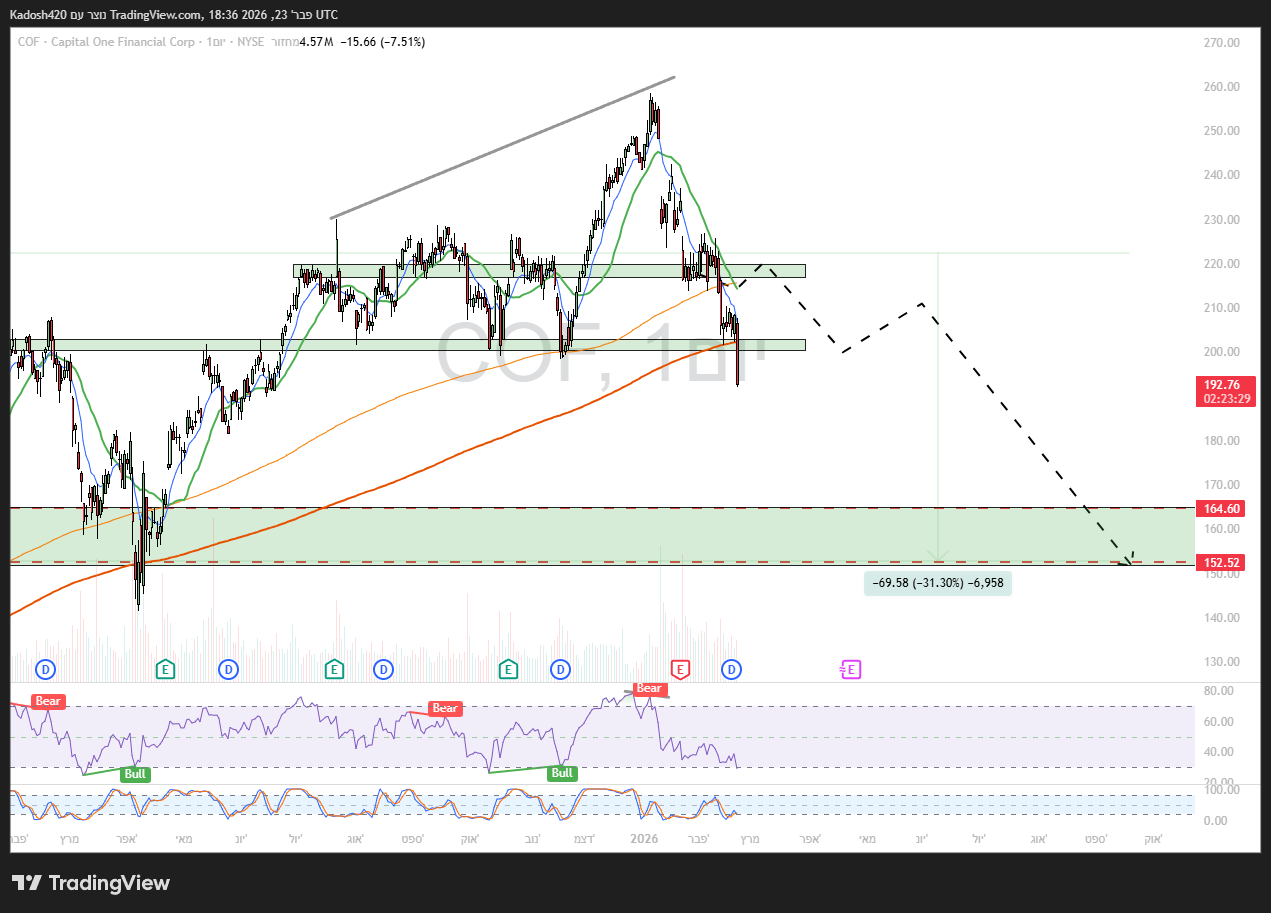 COF שוברת תמיכה היום ממשיכה ליעד השורט 150$ ⬇