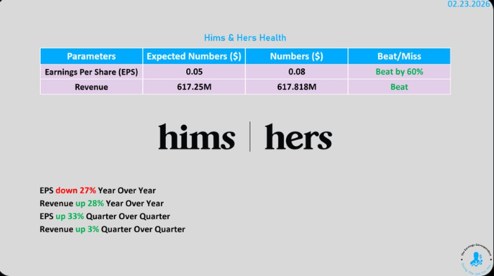 וניתוח קצר ולא הכי מעמיק של הג'ימי. דוח חזק מאוד בויה: החברה מציגה צמיחה אגרסיבית בשורה העליונה לצד התרחבות מהירה לתחומי טיפול חדשים ושווקים גלובליים הנה הנתונים המרכזיים לשנת 2025 הכנסות כ 2 35 מיליארד דולר זינוק של 59 לעומת 202 רווח נקי 128 4 מיליון דולר EBITDA מתואם 318 מיליון דולר צמיחה של 80 מנויים מעל 2 5 מיליון עלייה של 13 הכנסה חודשית ממוצעת למנוי ARPU 83 דולר עלייה של 28 בחישוב שנתי ניתוח ביצועי רבעון 4 Q4 2025 צמיחה ברבעון הכנסות של 617 8 מיליון דולר עלייה של 28 YOY שולי רווח גולמי ירידה ל 72 לעומת 77 ברבעון המקביל ב 2024 שנבעה מהתרחבות בינלאומית השקת מוצרים חדשים ולחץ משרשרת האספקה בתחום הירידה במשקל תזרים מזומנים תזרים מזומנים חופשי Free Cash Flow שלילי של כ 2 6 מיליון דולר ברבעון בעיקר בשל השקעות הון CapEx באוטומציה ותשתיות לבתי המרקחת של החברה תחזית ומהלכים קדימה תחזית ל 2026 החברה מצפה להכנסות של 2 7 2 9 מיליארד דולר ו EBITDA מתואם של 300 375 מיליון דולר יעד 2030 הכנסות של מעל 6 5 מיליארד דולר ו EBITDA של מעל 1 3 מיליארד דולר צמיחת מותגים המותג Hers צמח בלמעלה מ 100 השנה ומתקרב לקצב הכנסות שנתי של מיליארד דולר מוצרים חדשים תחום הירידה במשקל Weight Loss הגיע לקצב של 100 מיליון דולר תוך כ 9 חודשים חשוב לציין שרוב הכנסות 2025 עדיין הגיעו ממוצרים שאינם GLP 1 רכישות החברה חתמה על הסכם לרכישת Eucalyptus צפי סגירה באמצע 2026 מה שיעניק לה דריסת רגל משמעותית באוסטרליה וביפן. בשורה התחתונה צמיחה מרשימה מאוד השוק עוקב מקרוב אחרי היכולת של החברה לשמר את המומנטום בתחום ה GLP 1 תוך כדי התרחבות גלובלית מה שכרגע לוחץ מעט על שולי הרווח הגולמי אבל בונה תשתית רחבה בהרבה קדימה