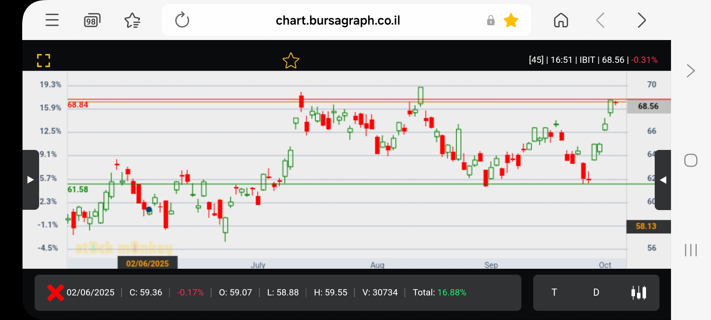אחרי שגייסה כסף מהמשקיעים וקנתה השבוע 525 ביטקוין (לפי 60M דולר) הביטקוין עלה מאז יפה , ועשו על הנייר רווח של 10M שקל מהיר (שווי כרגע 63M דולר) עפ"י הטכני , כל עוד התעלה מחזיקה= הכיוון של המניה הוא לפיבו ראשון (מחזיק מעט כרגע ונראה לפי ההתפתחויות בנייר מה לעשות בהמשך , לא ממליץ על כלום כי היא תנודתית מאוד)