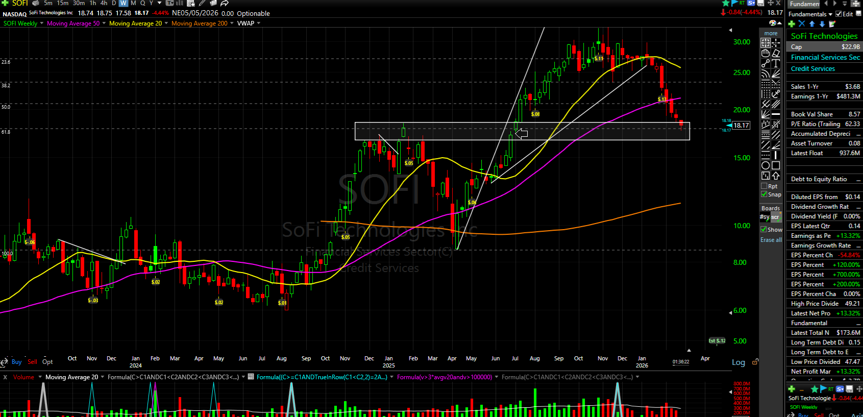 SOFI נכנסה לרצועת תמיכה כל רצועת 18.5-16.5