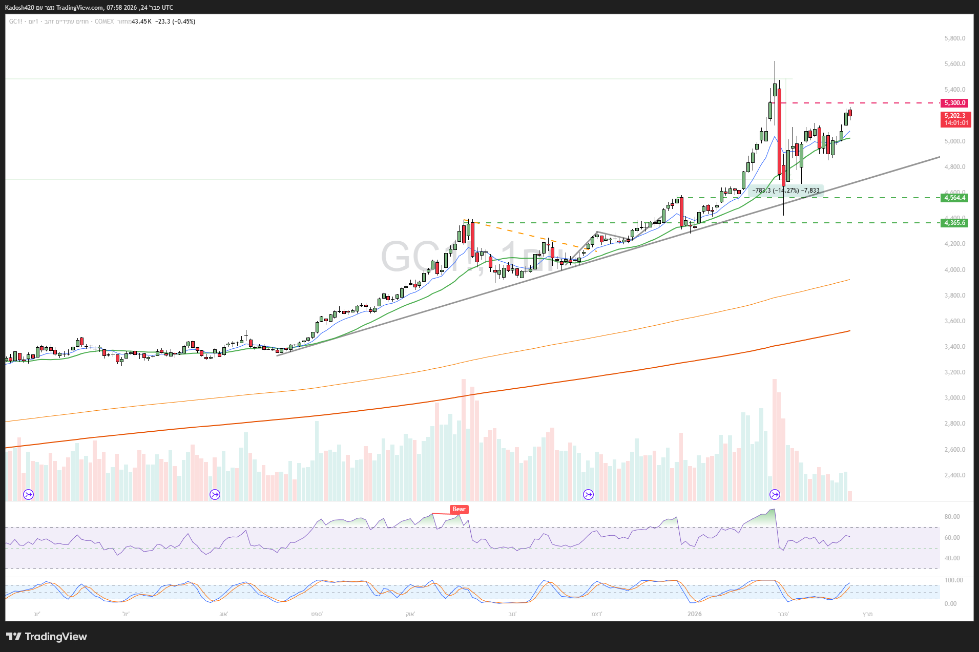 בתחתית תעלה מינורית עולהאחרי שיצאה למימוש בריא,והיתהפכה כשמעל 6030 תאומת פריצת הדגל,ומכאן עשויה שוב לבדוק את הגבוה השנתי-6300,ואולי להמשיך צפונה אל קצה התעלה המינורית הבאה בתור.להערכתי הטריגר לכך יבוא לקראת פרסום הדוח השנתי ל 2025, והצפי לשנים 2026/27.