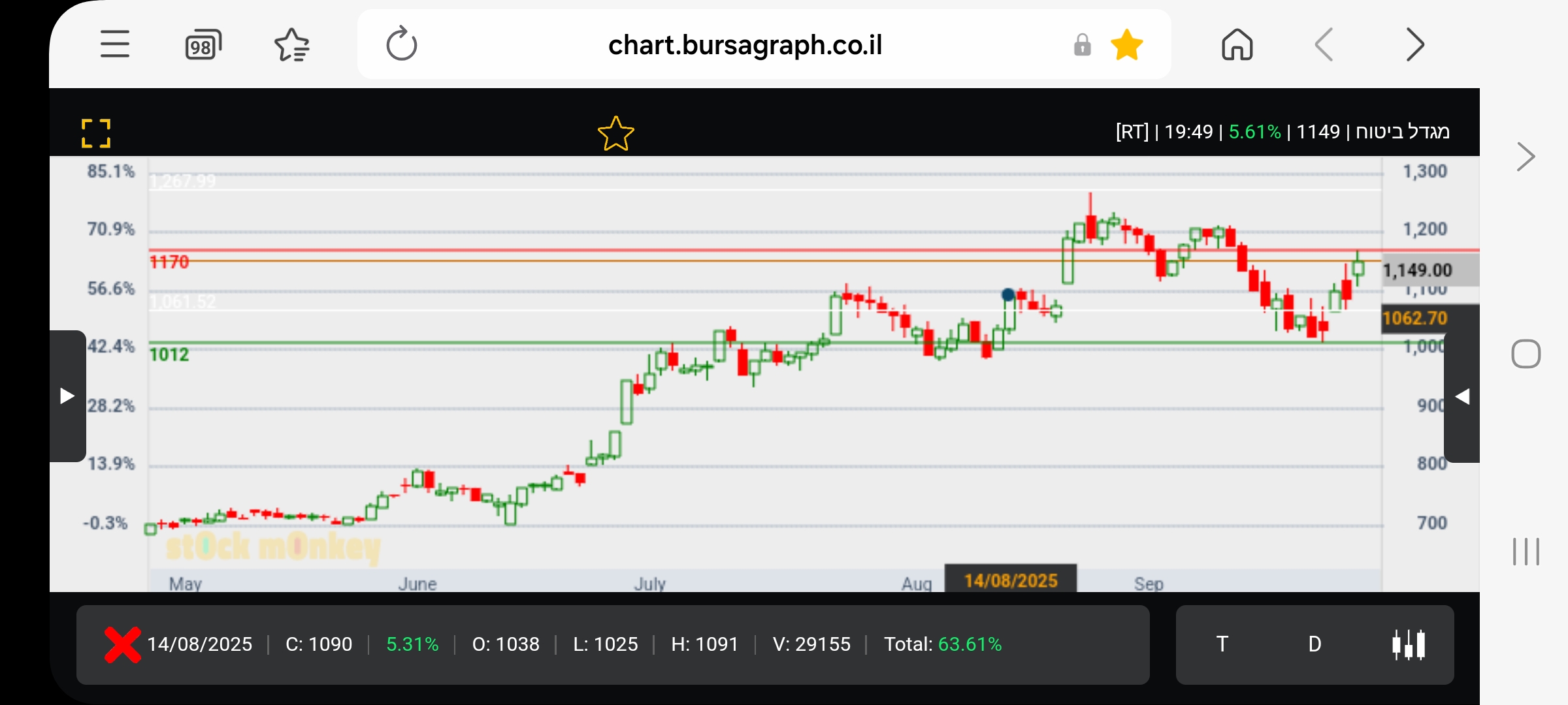 שכבר תרד אבל הנה.. לא מתבאסים על רווחים! רק מה היא נעצרה בול באזור ההתנגדות וגם היא תפרוץ כנראה כשיימשך המומנטום 👍