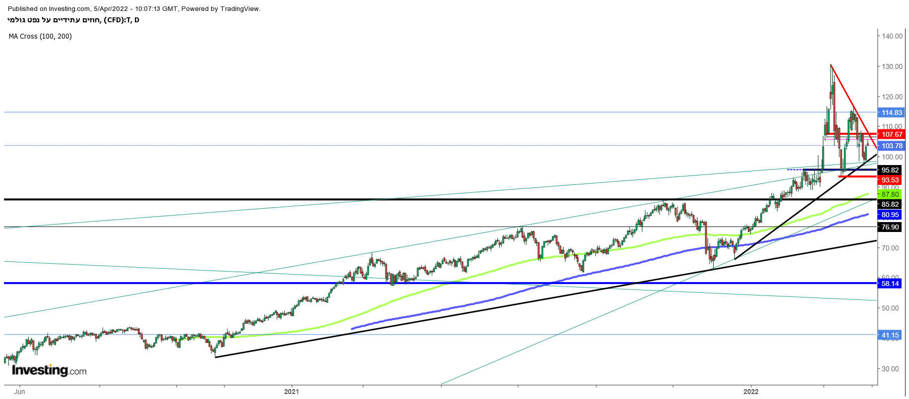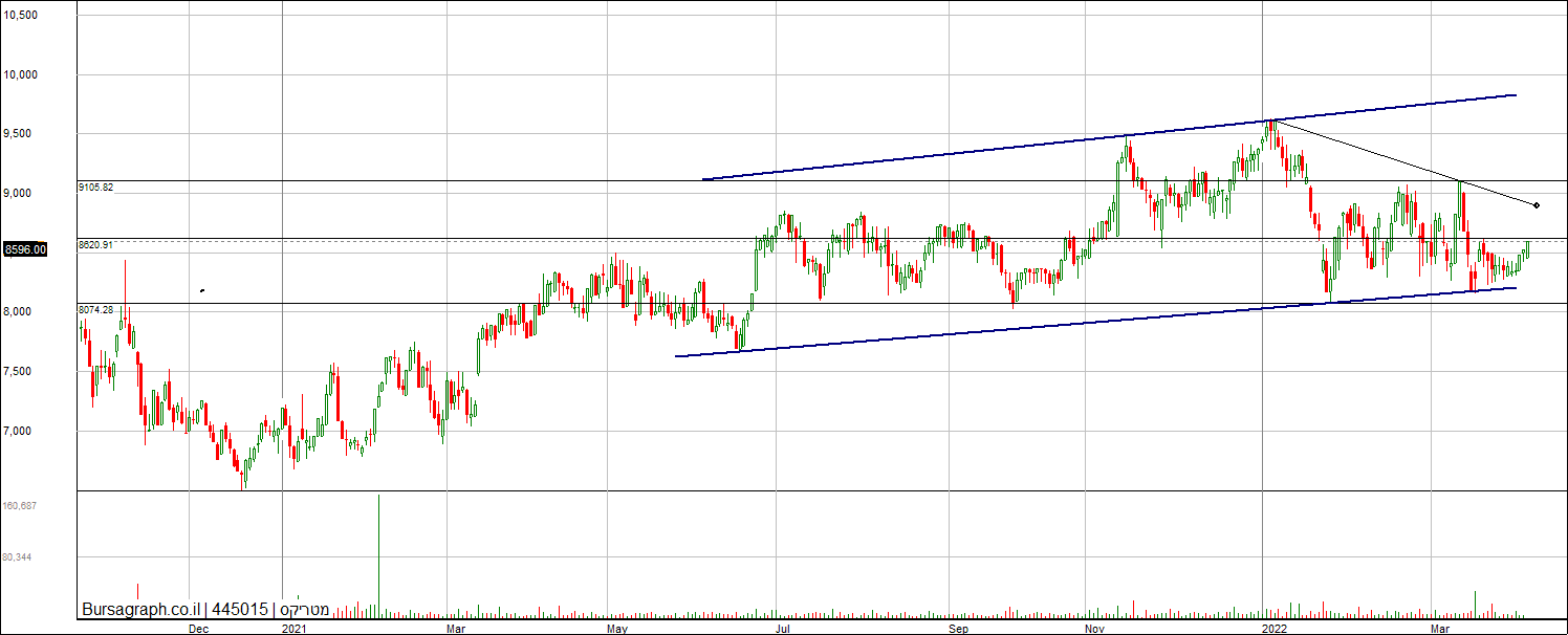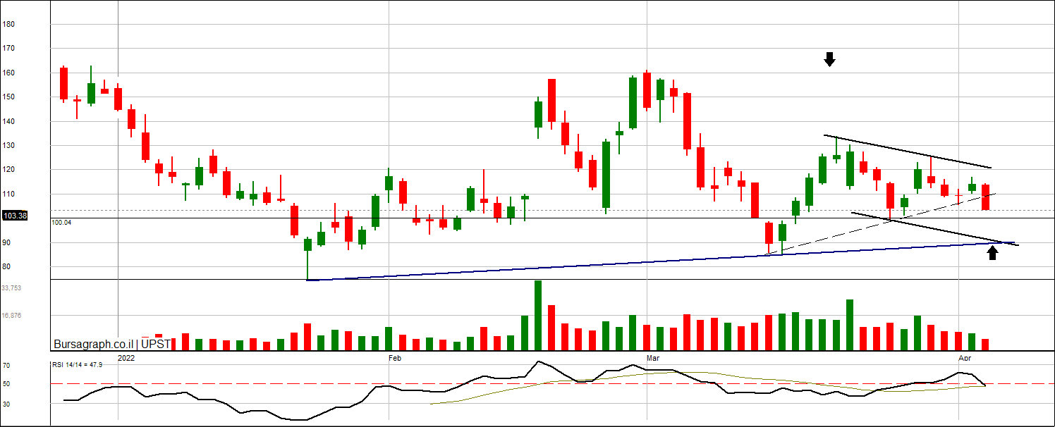 אחרי שהצליחה להתמקם מעל ממוצע 50 לראשונה מזה זמן רב, מגיע לרצועת מחיר שקצת בולמת אותה. פריצה מעל 102-103, תמיכה קרובה ממוצע 50 ב93