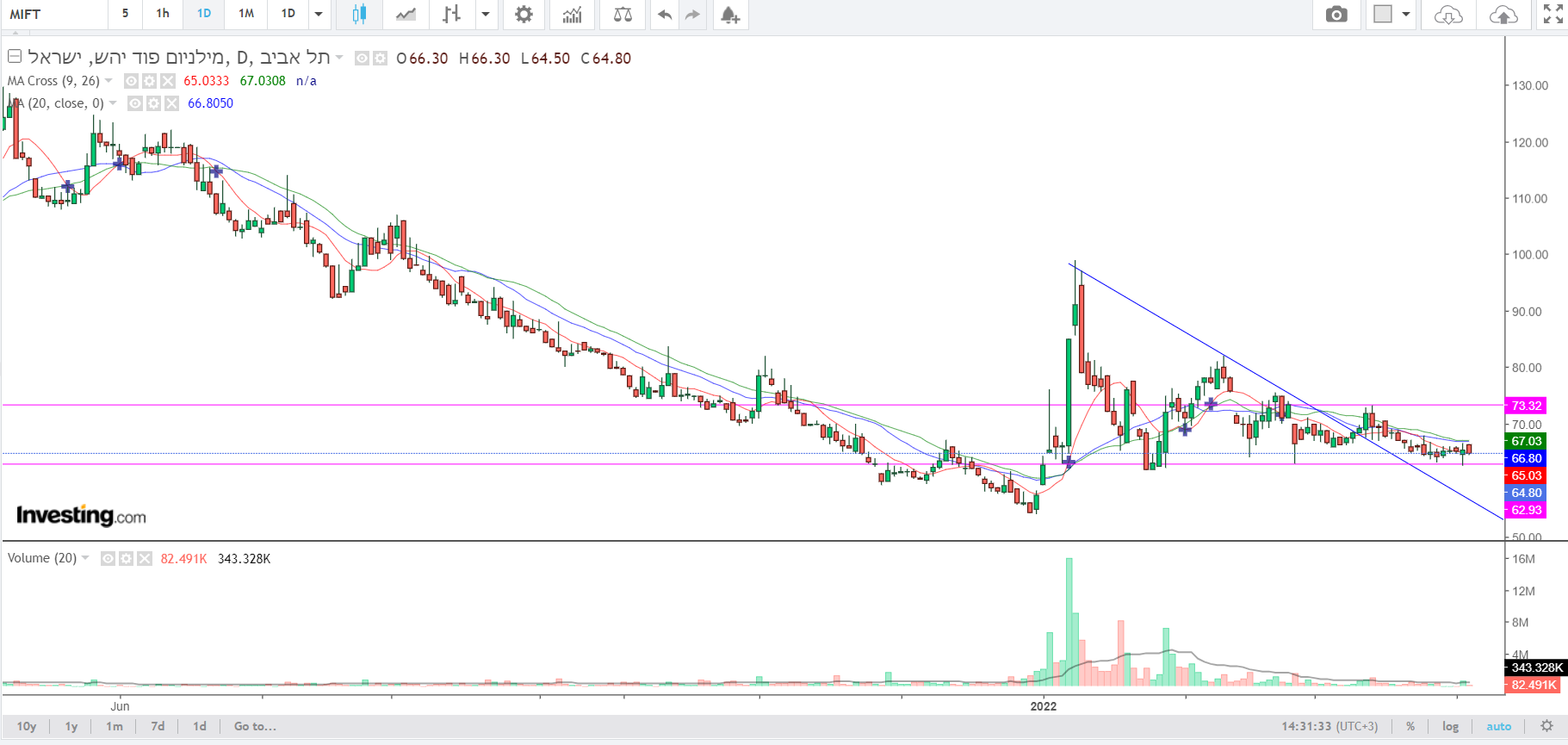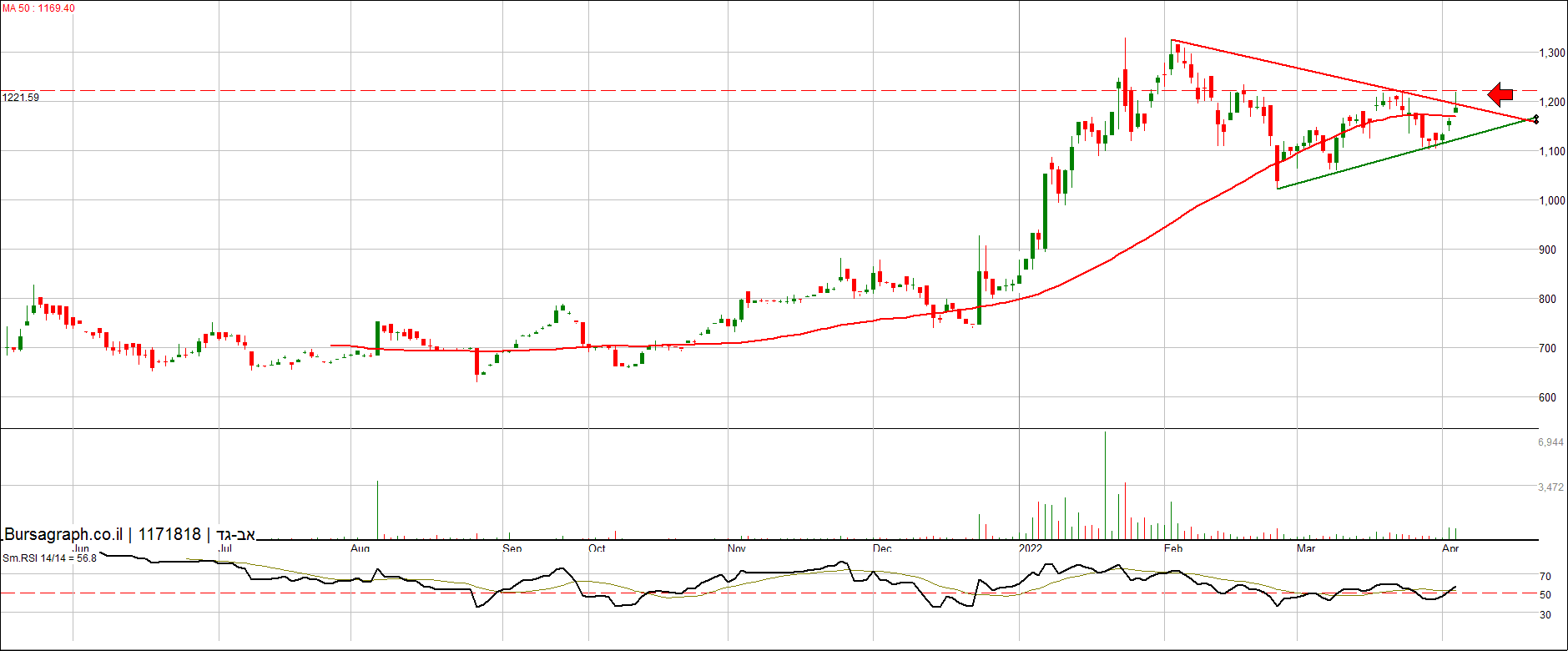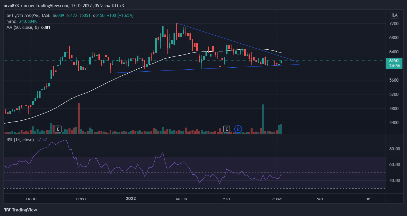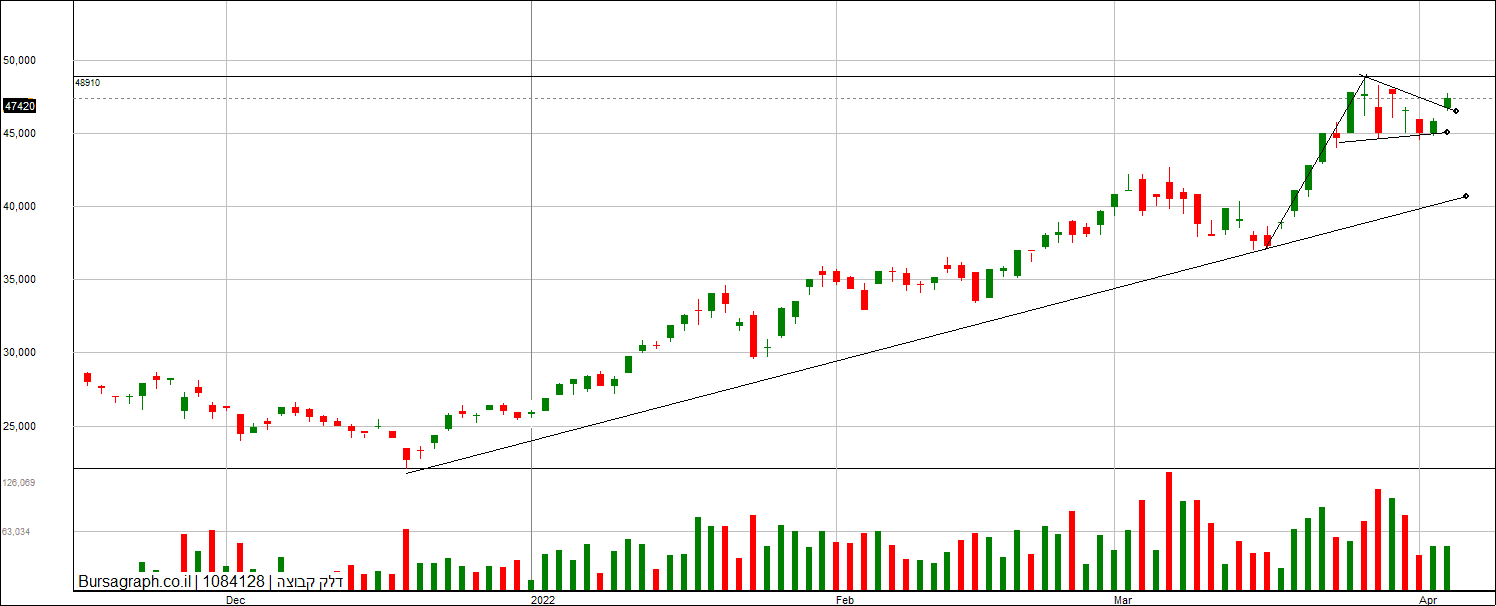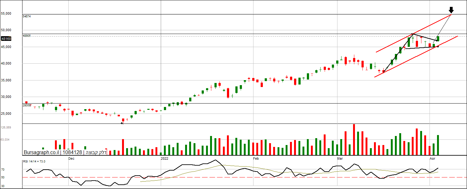 תמיכה קרובה: מ"נ 50. לע"ד צריכה לפרוץ בצורה משכנעת בליווי מחזור רציני כדי לצאת לדרך. על פניו פוט' בגרף ישנו... מחזיק ולא ממליץ!🤞