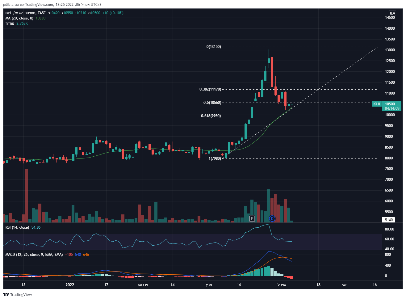 להתנגדות אופקית חזקה. הוציאה לפועל דגל שורי. שים לב כי יעד הדגל זה המקס' שלה בטווח הקצר. אני סבור שהיא תצא למנוחה באזור 10800-11000 נק'. מאידך, אפשר להיות מעודדים שפרצה קו מגמה יורד בט"ב. מעל האופקית בשחור, היעד הינו הגבוה הקודם.🤞