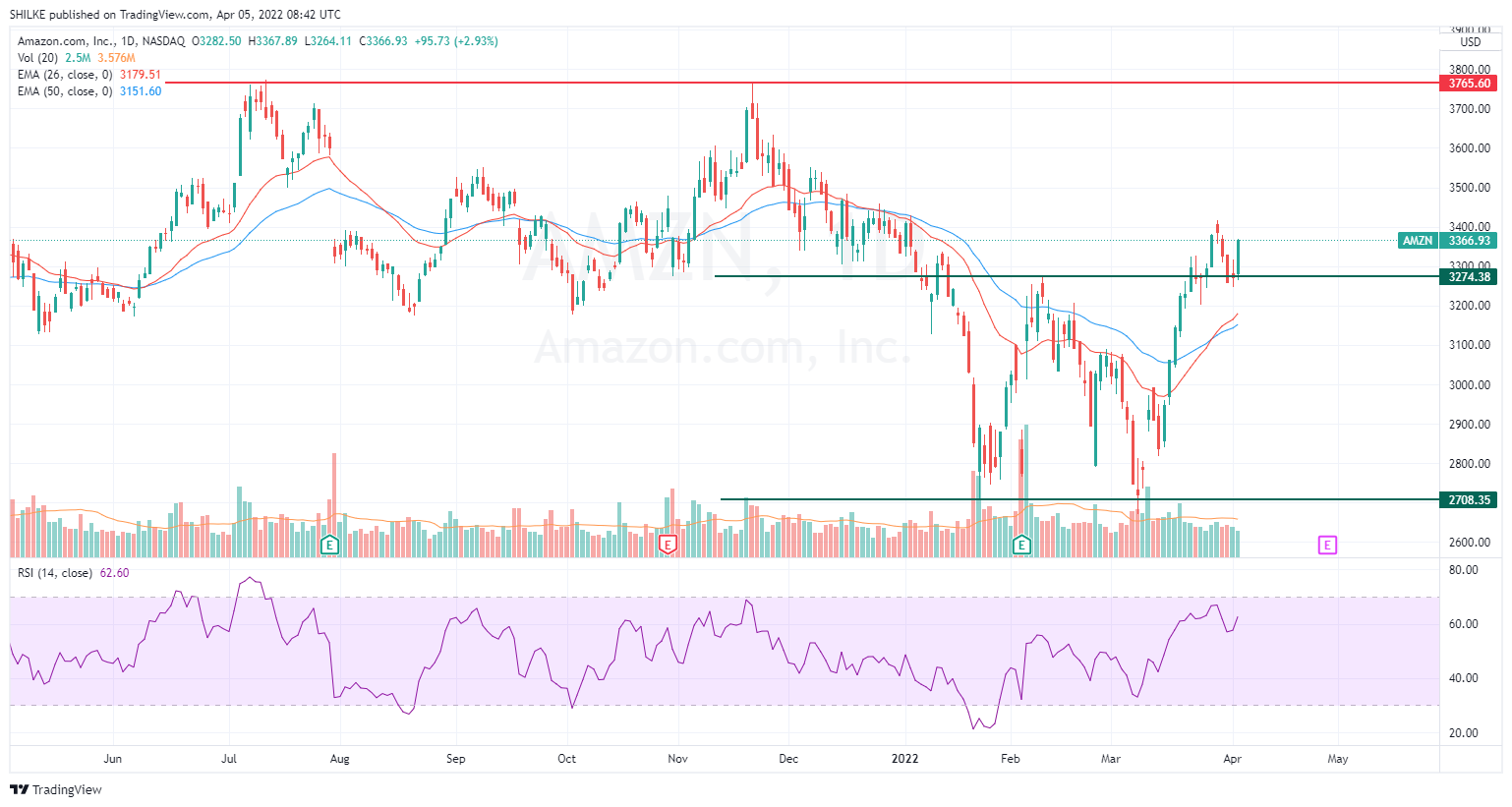 AMZN נראת בדרך לשיא W או תחתית כפול