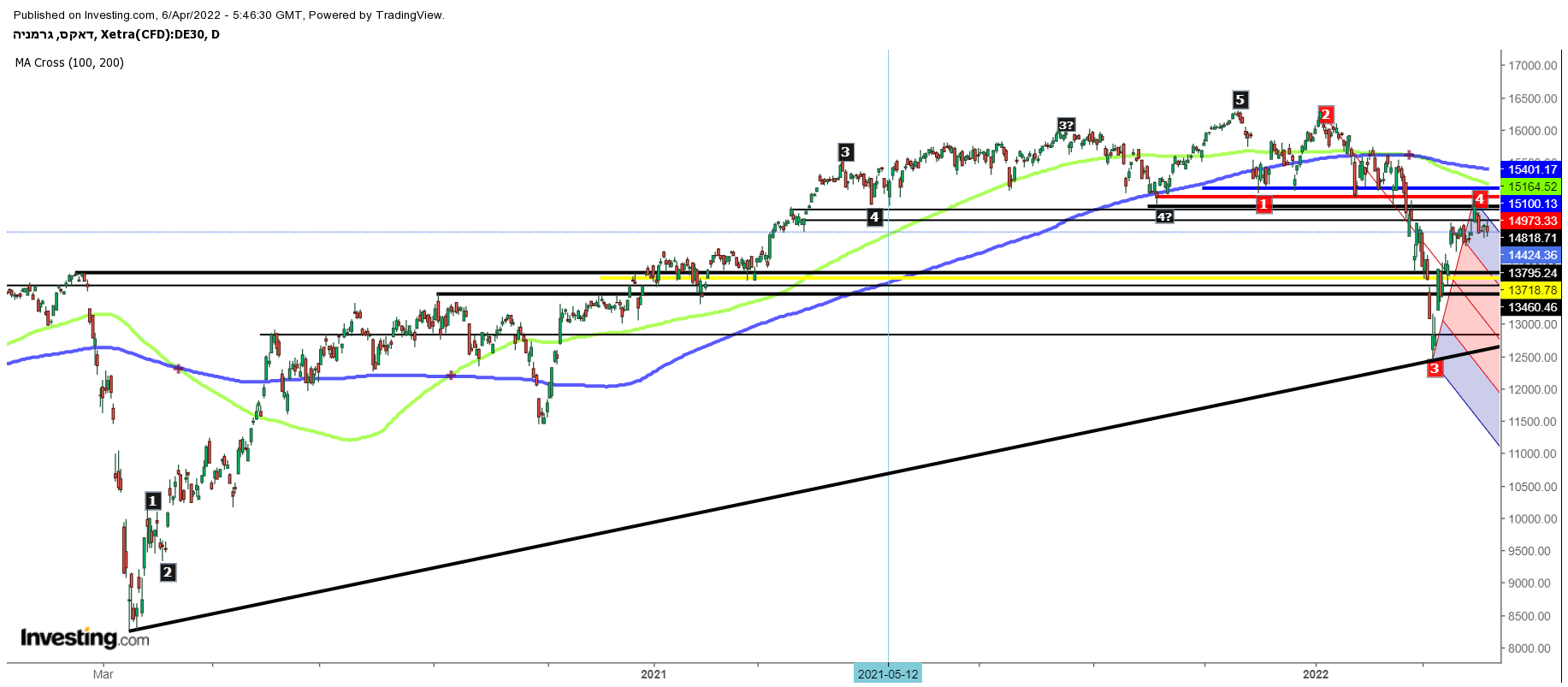 קטונתי אבל נראה לי ממש צפוי שיגיע השוק חזק,הקורונה מאחורנו ואפילו לפוטנה ואוקריינה מתחילים להפנים, ...(מסכנים הרוסים,איזה עתיד גורם להם פוטין,האוכלוסיה הפשוטה כמובן) טכנית ...נמצאת באוורור לאחר ריצה של 3 שבועות בערך,מגיע לה :) ה-RSI רווי וגם זקוק למנוחה כפי שניראה לי אנחנו חווים רוכ"ה ו\או דגלון התוכנית שלי ברגע שפורצת רוכש בסכום יפה TQQQ דעתי כמובן