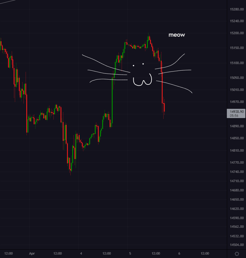 כי בטווחים קצרים זה לא מעניין אותי לשרטט...אני בונה על סווינג ארוך... וגם פה סטייה או פוטנציאל לסטייה חיובית עדיין לא קיים... כי יש שפל נוסף נמוך יותר. 14838 זו הסגירה היומית הקודמת... וכעת הנר שנוצר ביומי הוא סוג של מרזובו...חחח רק הפוך. האמת אוהב את האופטימיות שלך ואת הגישה הבריאה... אלא ש אפשר לומר כל יום ש ☀ תזרח... לפעמים יש שקיעה... ה גם יפה עם אתה עם הפנים אליה ואיתה😉