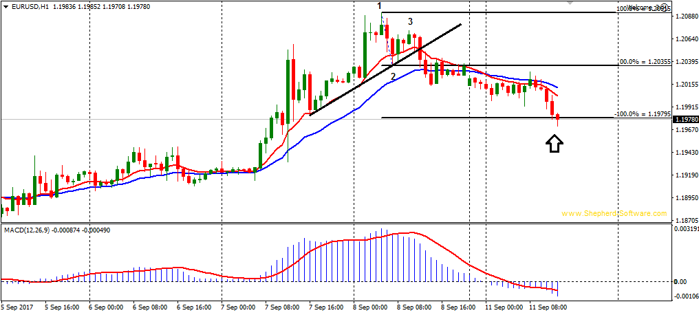 לא אומר כלום . אני לא יודע מה הולך שם בתוכנה של המטה טריידר כי בתחילת שבוע , הכל מתבלבל כי מחשיבים את ה 3 שעות שבין 12:00 בלילה יום ראשון ל 3:00 בבוקר יום שני , כנר יומי בפני עצמו של מיסחר , אז יכול להיות שזה עשה סלט מהכל . מחר יהיה המיבחן האמיתי , וכמובן יש את הטווח של יום שני , ויש את השיטה של התחתית 123 ופיסגה 123 שחשפתי ביום שישי , יש קישור לסרטון של מי שהמציא את השיטה , יש מאחורי זה הרבה הגיון , הרי אם רוצים לתפוס היפוך מגמה אז צריך שיהיה 2 שיאים יורדים במקרה של שורט בנוסף לשבירה של קו מגמה עולה , ו 2 שפלים עולים ופריצה של קו מגמה יורד . יורו דולר שעתי , תבנית שנתפסה לפני שעה