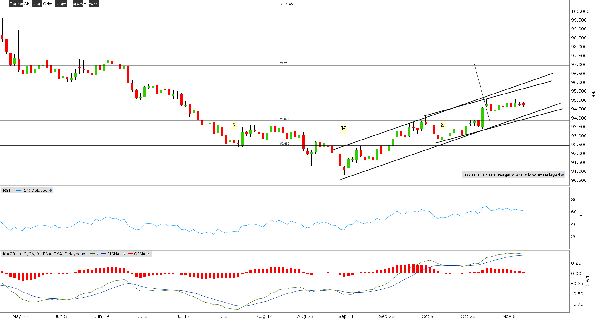 היה ראש וכתפיים, יעד שלו היה 1.15800 עכשיו צריך לחזור לבדוק צוואר בחזרה ולעלות לאיזור 1.18367. עדיין אם יסיים מעל 1.1617 בשבועי או בחודשי יהיה אפשר לקרוא לזה דיגלון שוורי. דולר אינדקס לא מראה שהוא בכלל חושב לפרוץ 95 וכל עוד לא פורץ 96 הוא זה השלילי. אני בלונג כרגע עד 1.1623 r2 היומי. אני לא נעול על 1.17 אבל בראש אני חושב לונג. ב r2 יש אפשרות שאקח שורט. כל יום ו הפיבוט שלו