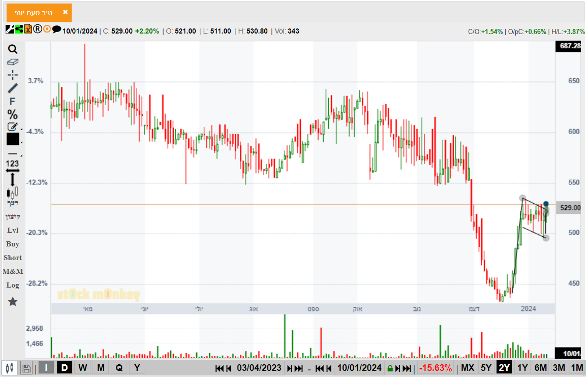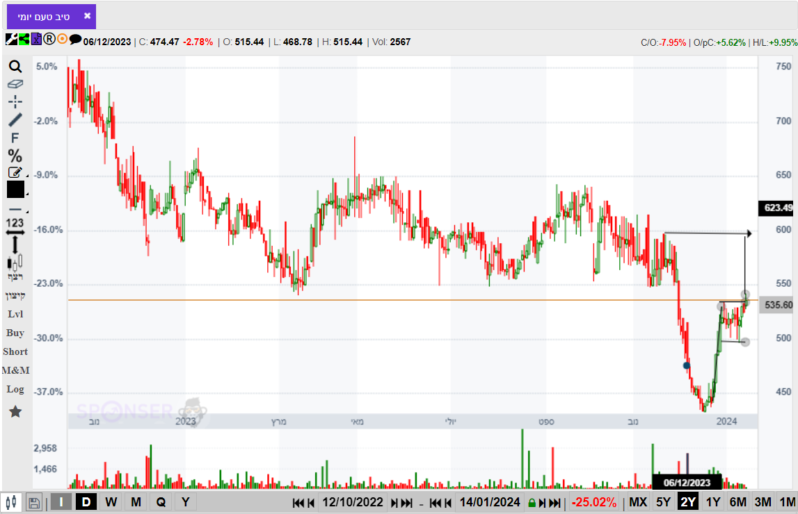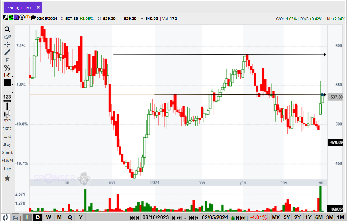 נסחרת בעליה מס' ימים. מתחתית 500 בואכה 600. מסחר דליל, אך כך היה גם כאשר ירדה. גילוי נאות, מחזיק
