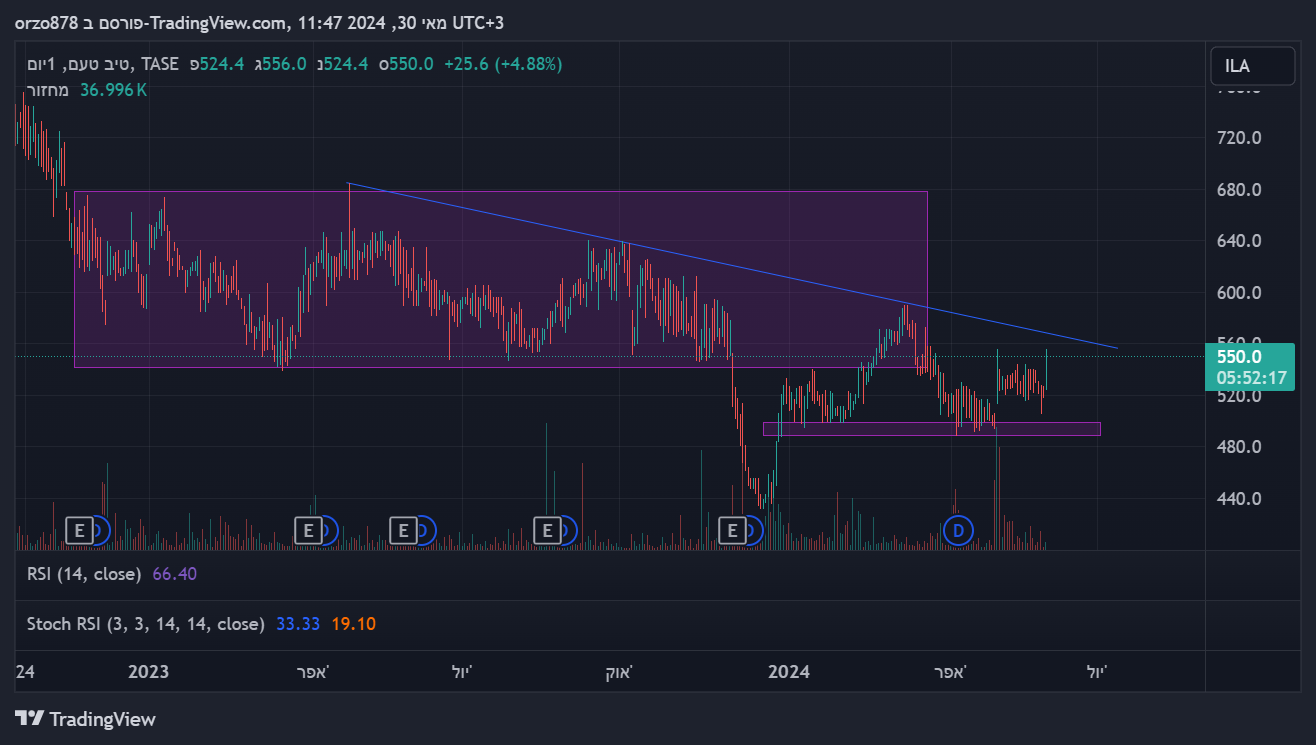 סגרה גאפ על תחתית משולש והיום פורצת מעל 556 יכולה לתת מהלך 👍