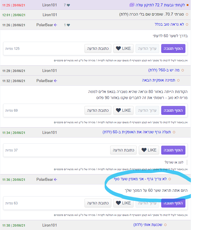 פגעה בך ולכן אתה מרגיש חייב "להחזיר" לי. אז אני נאלץ להודיע לך שכל עוד תכתוב פוסטים/תגובות החלטיים ללא גיבוי טכני/פונד, תקבל ממני תגובה דומה. אלא אם ההחלטיות שלך על הירידה הצפויה בגבעות נבעה ממידע פנים של ההודעה שטרם פורסמה, ואז אתנצל בפומבי כמובן 😛