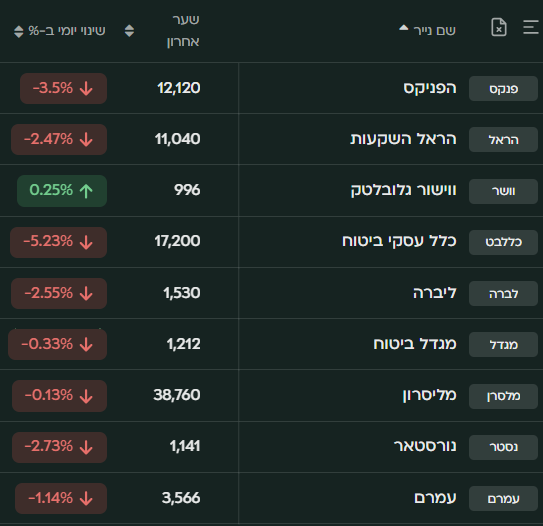 נכנס כעת לתיק, הכל אדום?? מינוס 2.17%, מחזיק הפניקס, ליברה, הראל השקעות, כלל ביטוח, מגדל ביטוח, ווישור, עמרם, נורסטאר,