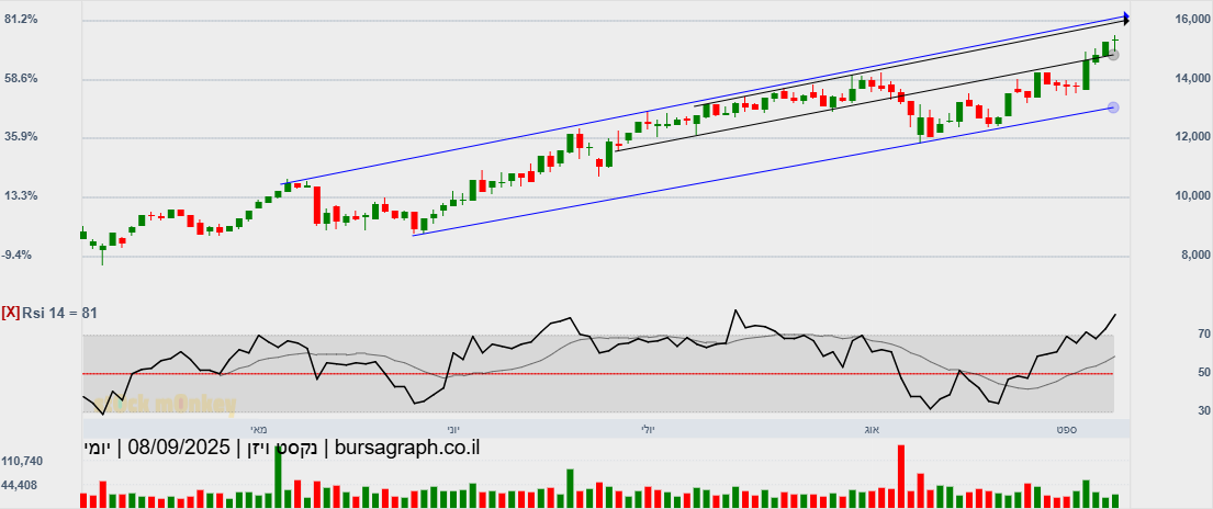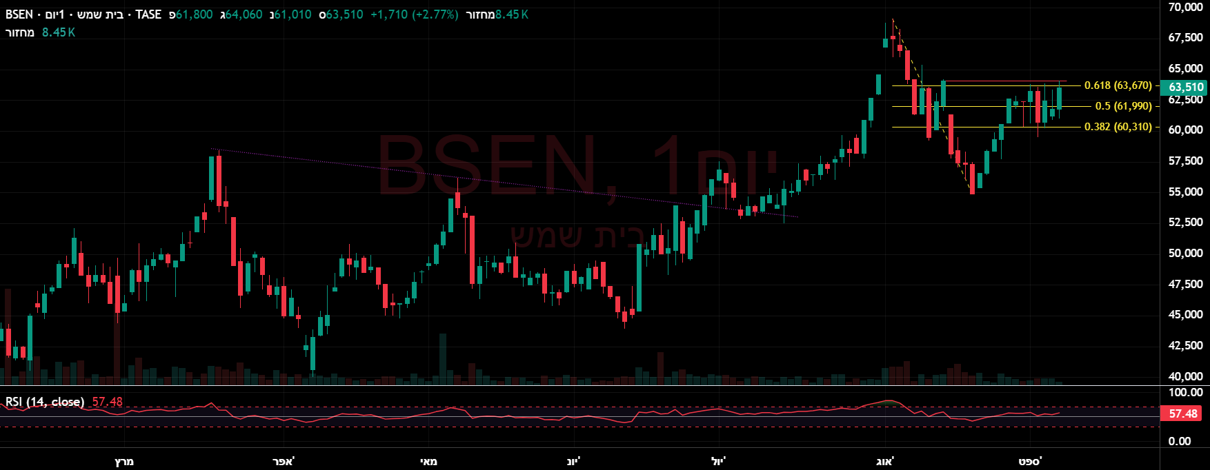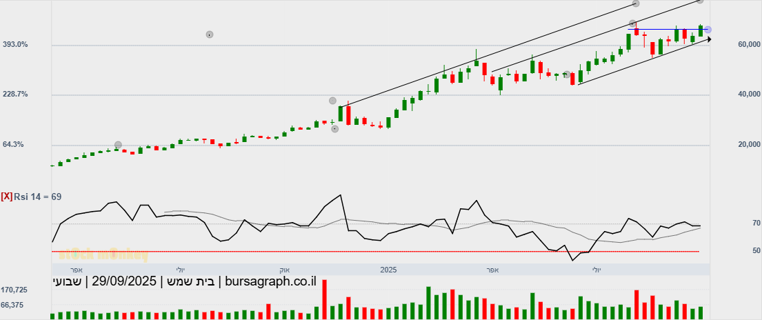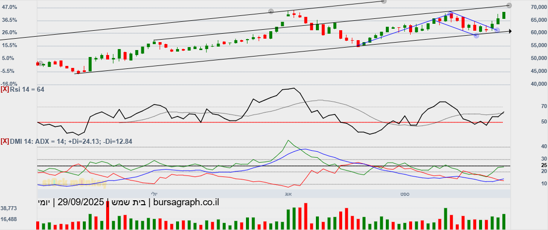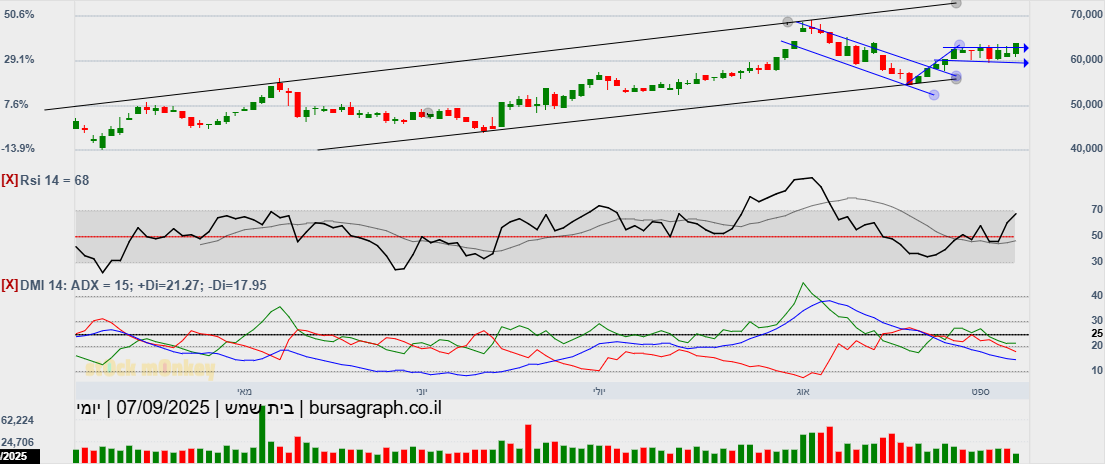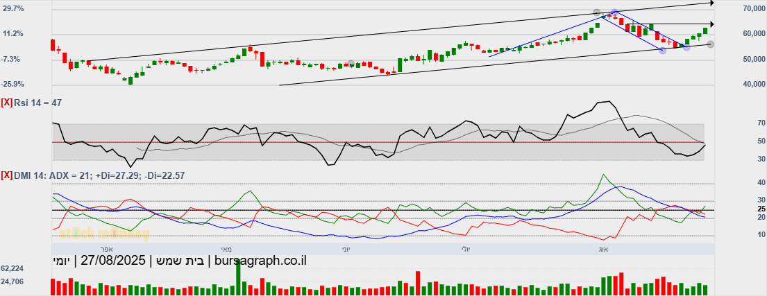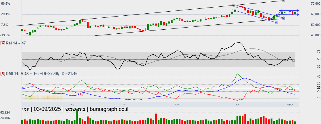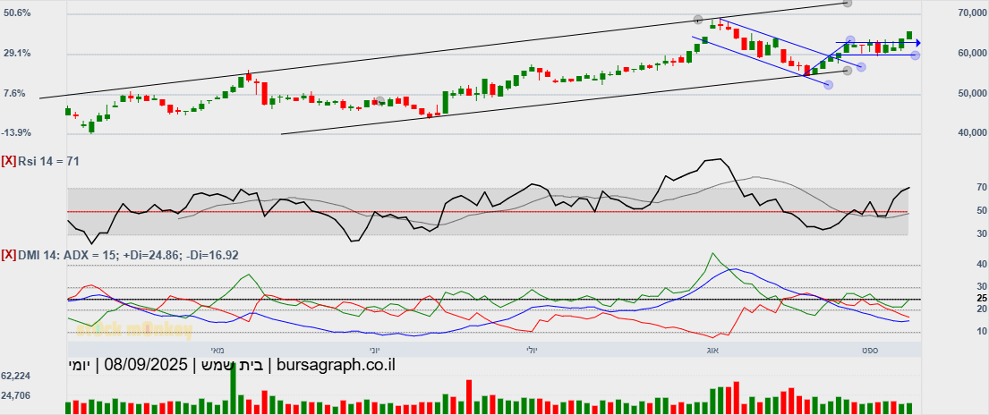 סגרה מעל 60000(60580) גבוהית יומית,ובמחזור גבוה מאד,הערכה שתמשיך במהלך שורי צפונה,כשגם המתנד המהיר הסתובב,ואולי יעזור בדחיפה,כשהיעד הבא 64300!😛