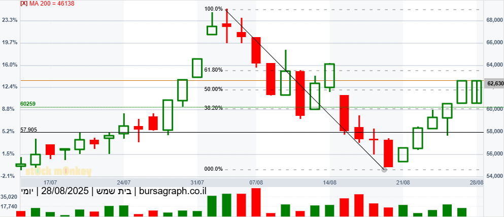 לנר פטישי ירוק,ועם זנב קונים,ובמחזור יחסית גבוה. התנגדות קשה מאד בדרך ל 60000 להמשך המגמה השורית במניה.