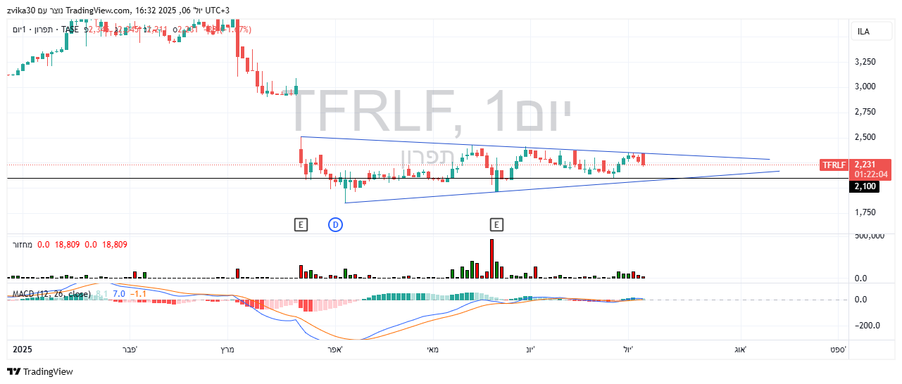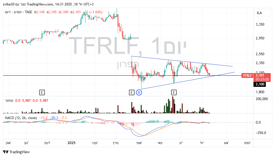בפורום במיוחד מהתותח הראשי בפורום וגם חברים נוספים התעניינו בניגוד לזמנים אחרים שרק בודדים היו משקיעים בנייר תפרון היא חברה בצמיחה וחשוב מאד שתראה רבעון טוב כמו שהיה בשנה המקבילה ועדיף יותר ריווחי אבל זה משאלת לב כי קשה לנתח את הנייר לאחר המלחמה וירידת הדולר והנזק שעניין המכסים ועלות ההובלה וכד יכול לגרום לכן זה מטריד אותי לא מעט ביחד עם זאת רוח של מזרח תיכון חדש נושבת אבל לא נראה לי כרגע שתיהיה לזה השפעה חיובית על הנייר