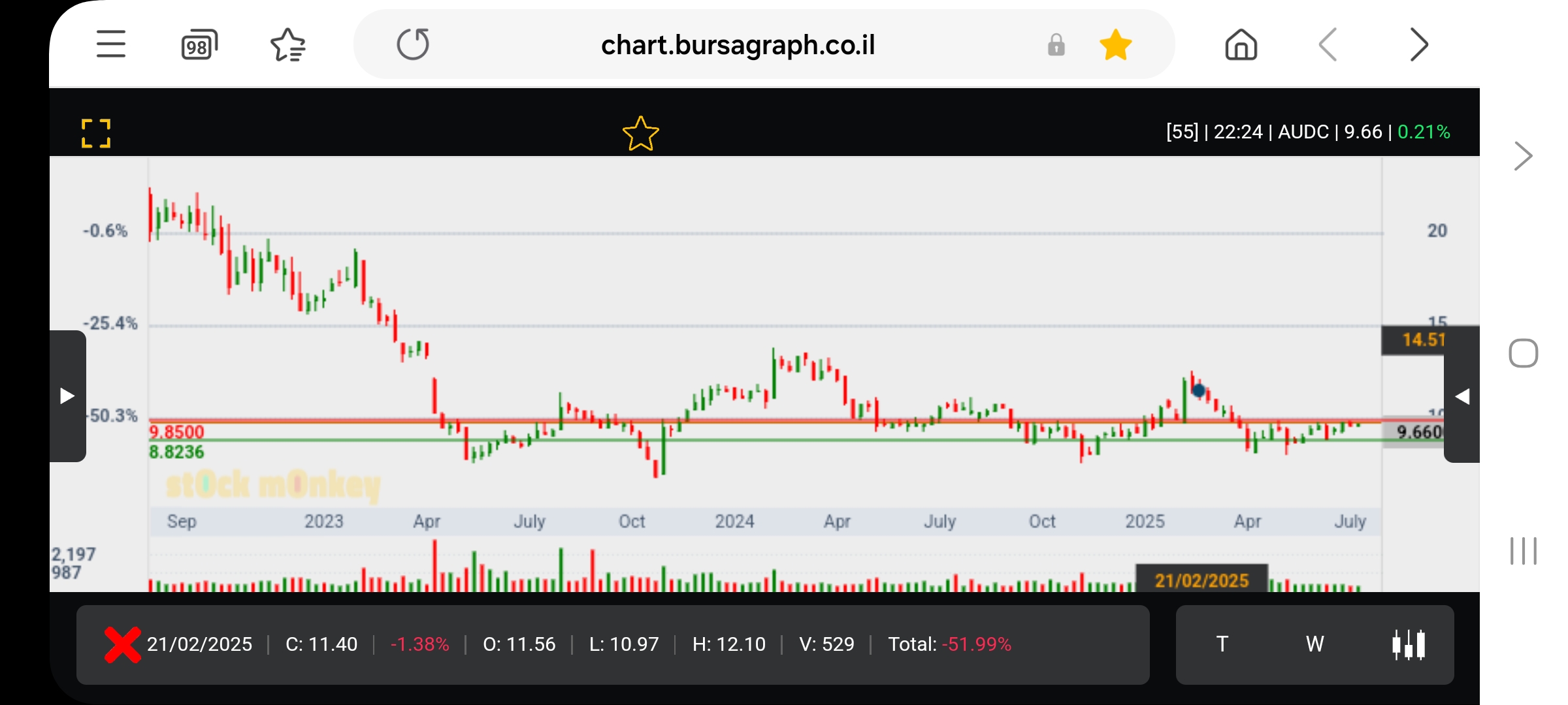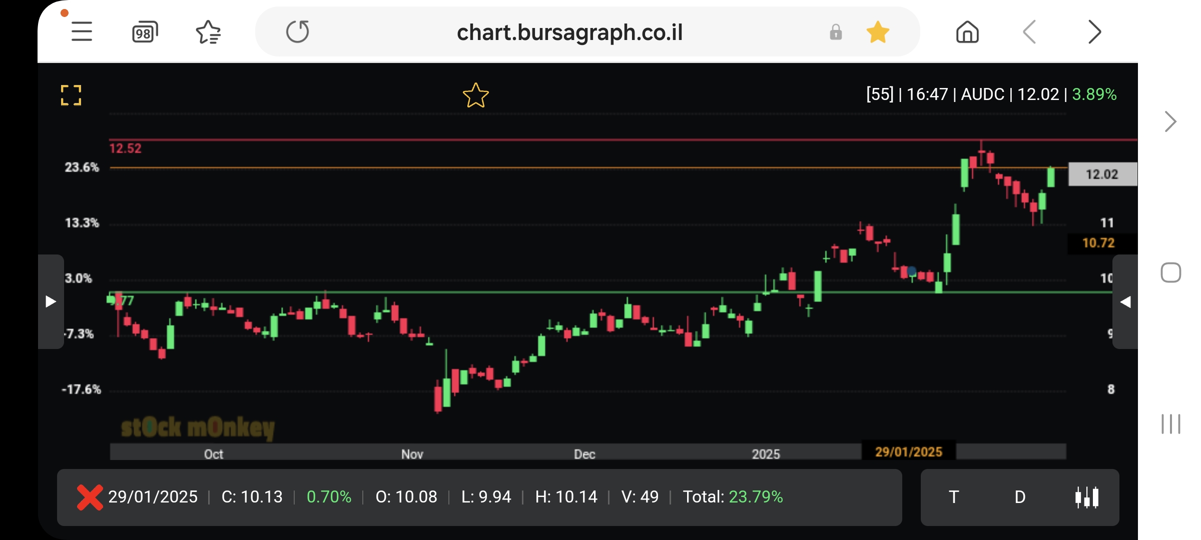 יש מצב דשדוש של שנתיים.יש קצת באז סביב AI . מי שלא מבפנים בבחברות טכנולוגיות לא יודע איפה נמצאת חברה בתחום ,או אם הוא לקוח יש מצב שידע חלק. אנחנו האחרונים לדעת בדכ אז שנתיים דשדוש,היא גם חברה די רדומה מבחינת הכנסות אבל מעלה גרף שבועי ,ותעשו יומי מה רואים? אגב יש לה 80 מיליון מזומן ו 900 עובדים ,לפריון יש 350 מיליון מ 500 עובדים