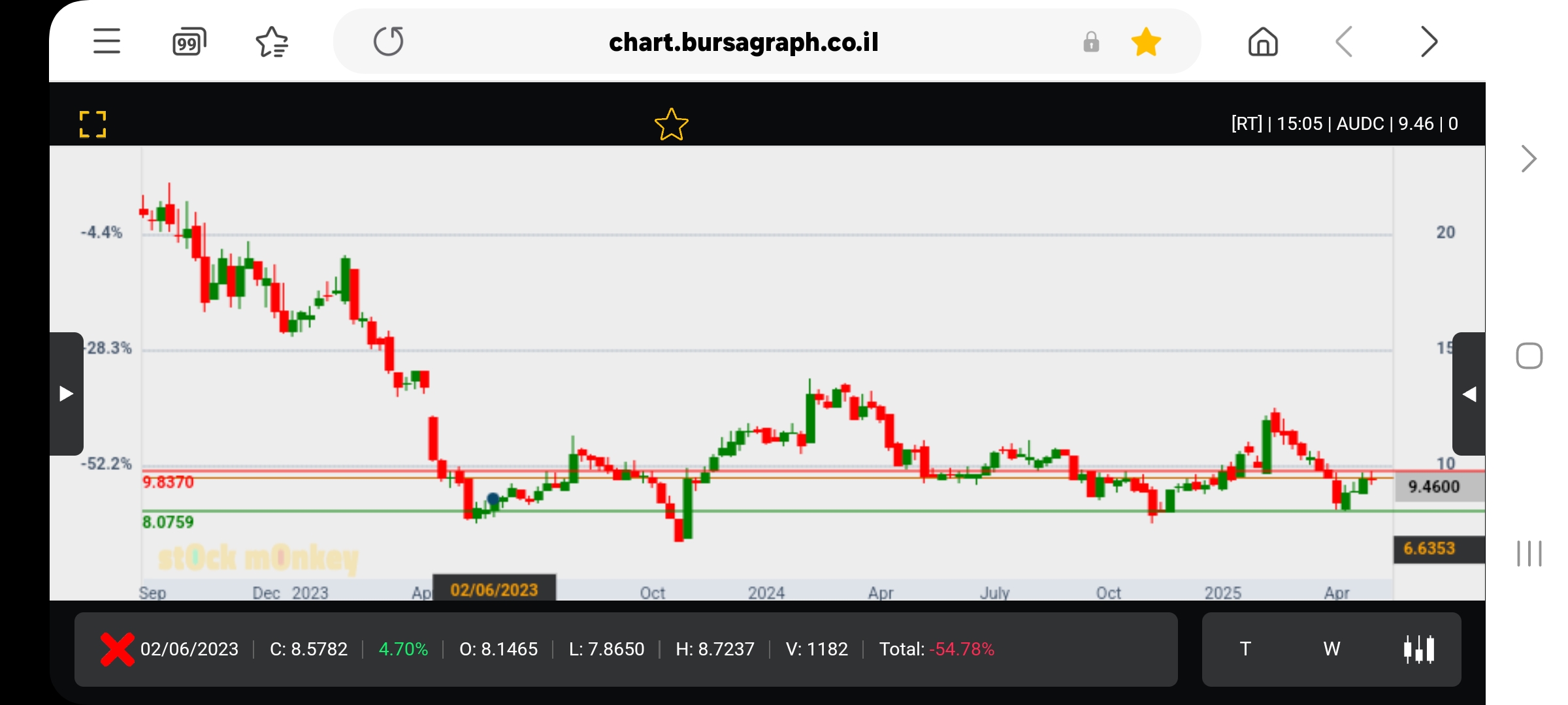 מבט קדימה להמשך. עדיין תחת קו מגמה יורד גם בטווח הקצר,אבל כרגע לתת ריבואנד עולה (9.3 דולר). אבל מסוג המניות שאם תשכנע את השוק שהיא משתפרת, יש הרבה בשר לעליות בהמשך הדרך. דעה ולא המלצה