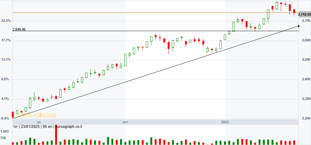 במדדים העיקריים,אלא אם יחולו שינויים דרמטיים היום ומחר. מעוף,90,נאסדק,אסאנדפי בין 2-3 אחוז. אולי רמז ששנת 2025 שתהיה חיובית,אך לא ראלי ענק ופחות חזקה משנת 2024. וכדאי להסתכל על משחק המשקיעים הוירטואלי ולראות את התשואות היפות של רבים בחודש ינואר.גם זה סוג של מראה. דעה ולא המלצה