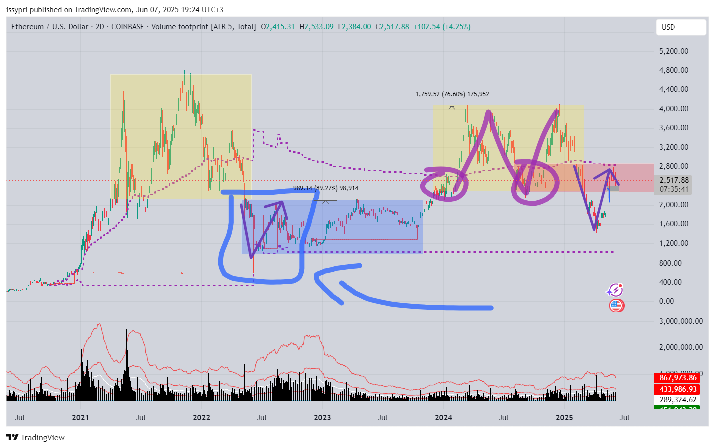 בין הביט לבין האתריום היא כזאת שכל 4 שנים בערך לזמן קצר האתריום נותן מהלך חזק מאוד (זמני) מאיזורי התחתית של הקורלציה בינהם. זה קורה באלטסיסון...