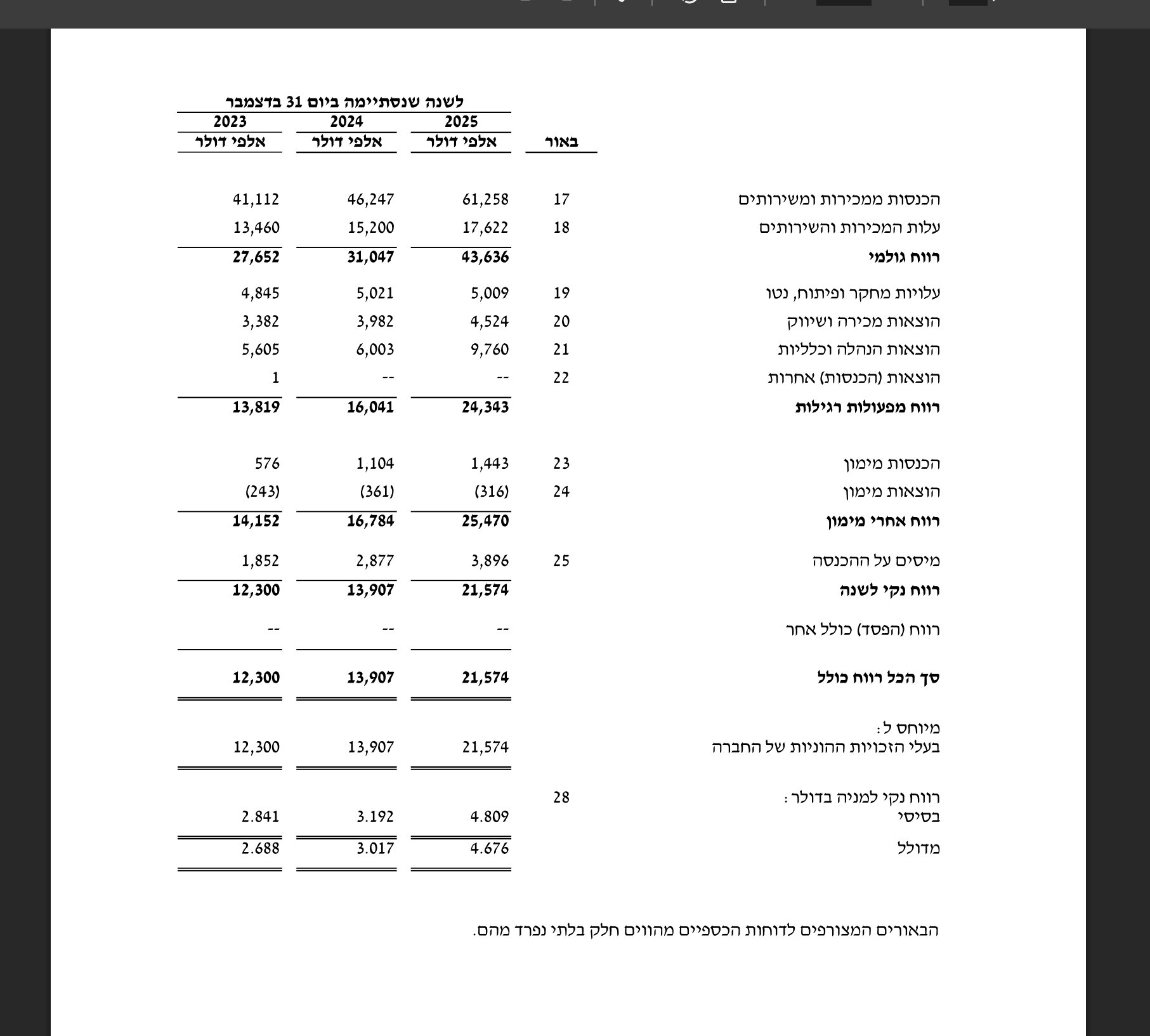 לא התעמקתי בדוח. ראיתי את הרבעוני נ