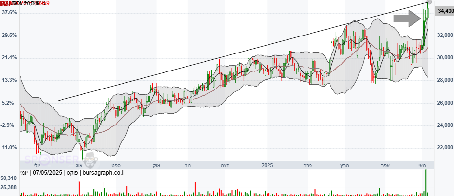 ככה אני רואה את פוקס..... הגיעה לקו מגמה עליון ברחה כלפי מעלה מהבולינגר (כלומר, סיכוי רב שתחזור "פנימה") לדעתי , בשלב הראשון, תגלוש לכיוון הממוצע 5 - לשער 32800 בערך אבל מה אני מבין? אל תקשיבי לי, אני סתם מבלבל ת'מוח