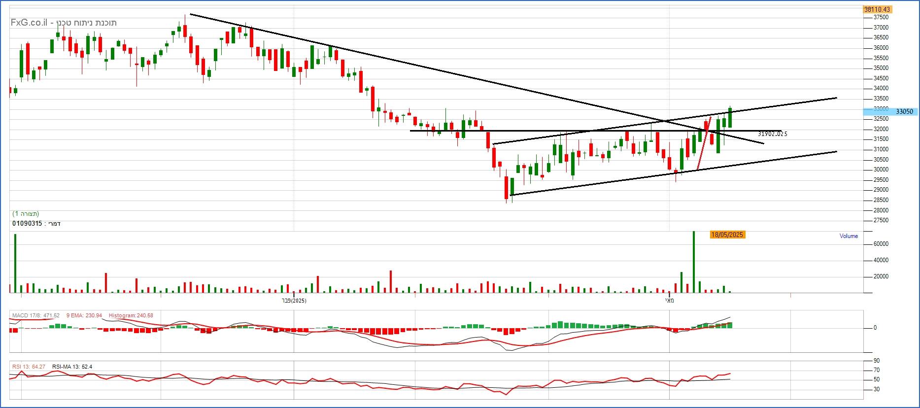 דמרי פורצת קו מגמה יורד פורצת התנגדות אופקית.