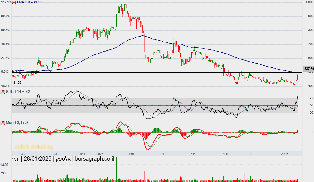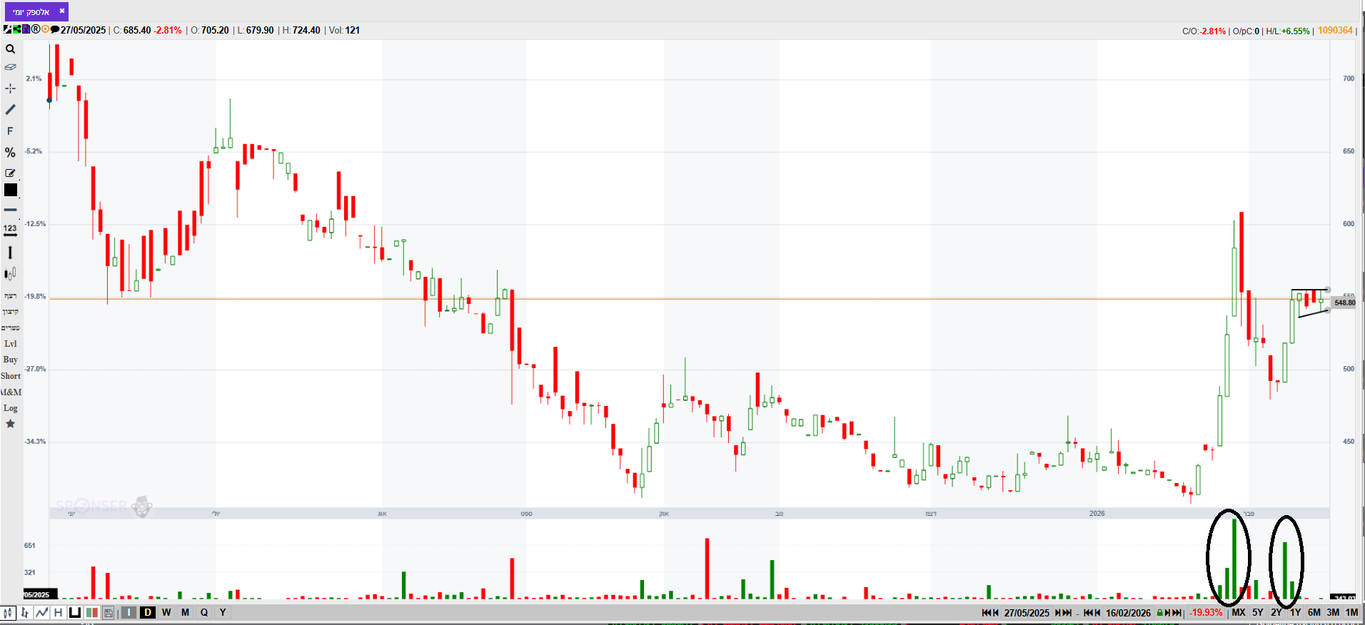 המחזור הדליל שלה, ובכמה ימים האחרונים ראינו קצת התעוררות. כן אני עדיין חושב שצריך לקחת בחשבון שהכניסה והיציאה שם עלולים להיות צרים, בעיקר למי שרוצה להיכנס ולצאת עם כסף גדול. או לחלופין ידרוש התעסקות עם קניה/מכירה במנות וסבלנות לאור מרווחים בין שער קניה למכירה, שלי אישית זה פחות סימפטי כי דורש הרבה התעסקות (הסיבה שויתרתי בזמנו על כניסה למניה לאחר שראיתי שאפילו בסכומים קטנים היה קשה לבצע קניה).