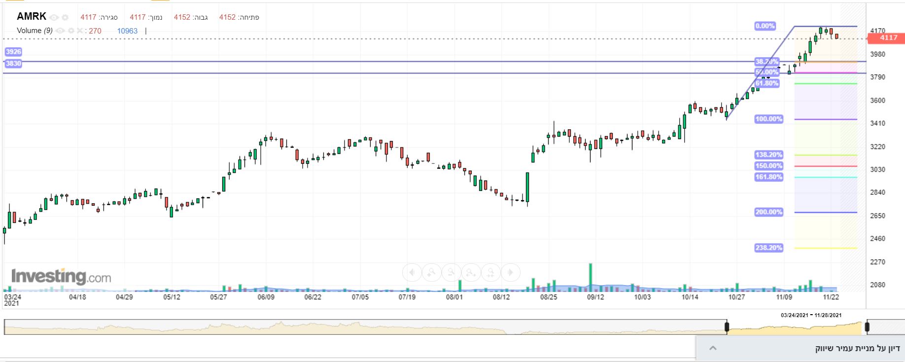 ותשאיר לעצמך הצעות,כי עד עכשיו ההצעות שלך לא משהו.....ושוב...תכסה את האגו..הרווחתי ים...הפסדתי קצת...וכ"ו. המשך יום כתום לכולם וגם לך ידידי.....שחררני מעול הוויכוחים איתך...כי אתה לא מחפש להתכתב ולשתף ולנשות ולעשות BRAIN STORMING עם דעות וכיווני חשיבה שונים....יש רק דרך אחת והיא של סבוטקס, ולכן...עזוב אותי מתחתיות ומניות של 100שח מחזור יומי.....כי כל מומחה טכני ,תבקש את תגובת החברים בפורום טכני , שאם מחזור של 100שח אי אפשר לערוך טכני....לא מדוייק הטכני,לא תקף הטכני.....אילו עוד מילים אנסה להסביר לך........ועמיר עדיין עכזבת ענק....כי כשהירוקות התחילו.....היא הייתה הכי מבוססת ואם יכולות פריצה ענק...שערים של 4000-5000 היו גם ב2017\18...... ברור וידוע לכוווווווווולם שגם במניות כאלו,מחזורים 0,ספקולטיוויות מאוד.....יש המרוויחים מעליות ויש מירידות!...ויש רווח אם פקחים ומחושבים כמה שאפשר עד ההימור.