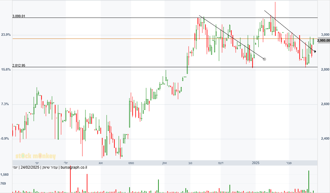 שער 4000 נק' חשובה. פריצה שלה תאותת על שיאים חדשים. מהדוח הקודם עלתה יפה לפי היעדים. נראה איך הדוח הקרוב שלה יהיה. מחזיק, לא המלצה.