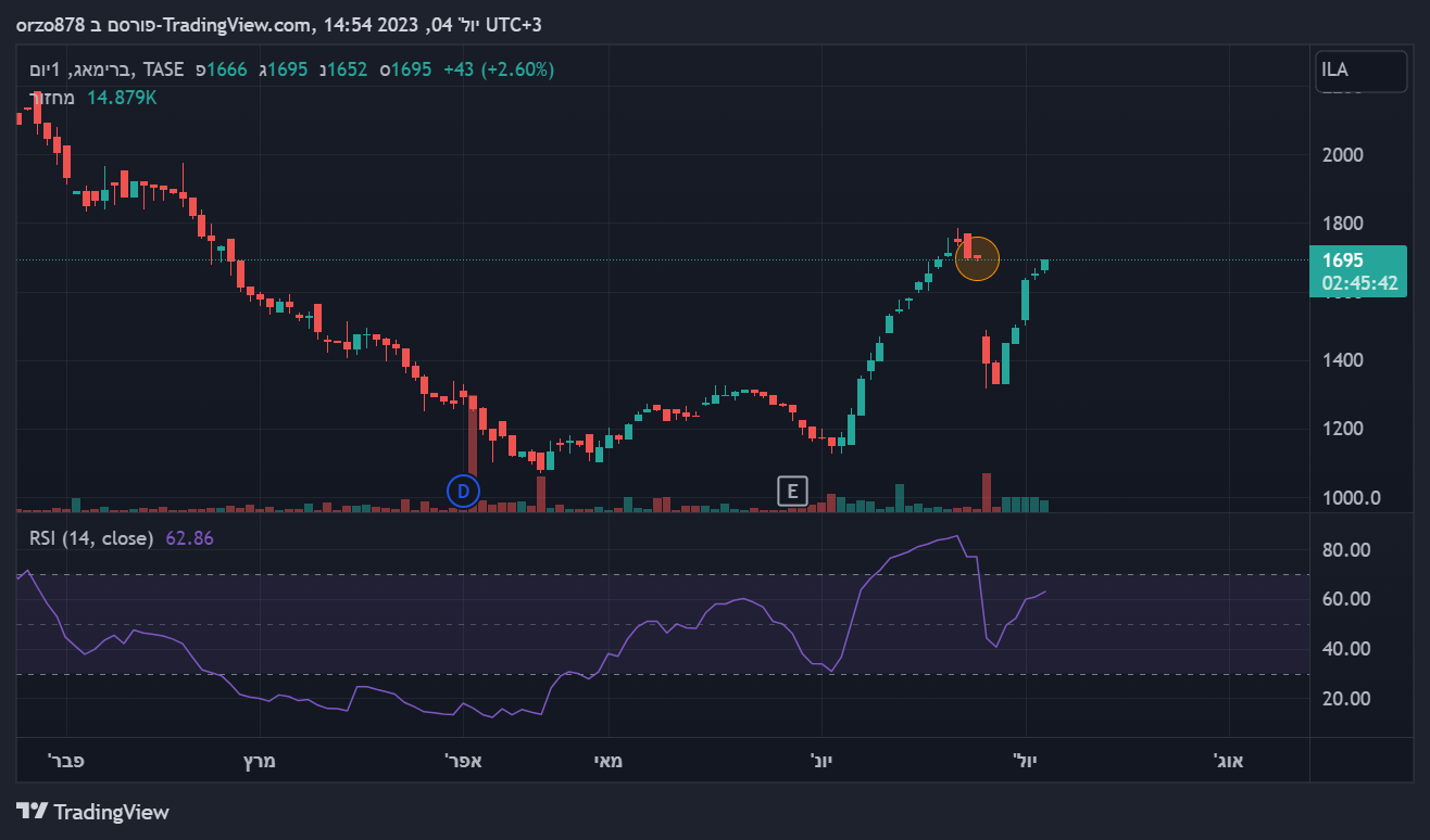ברימאג כמו שציינתי שוחחרה הפסד 5%