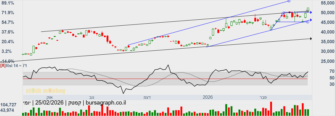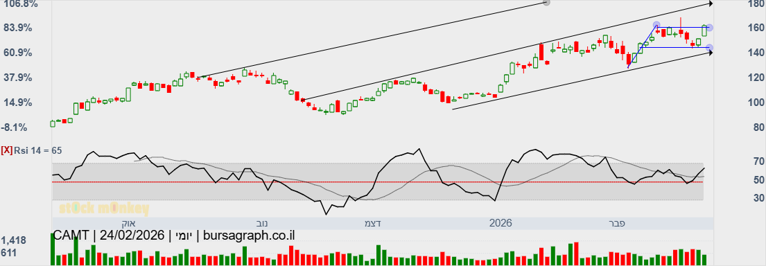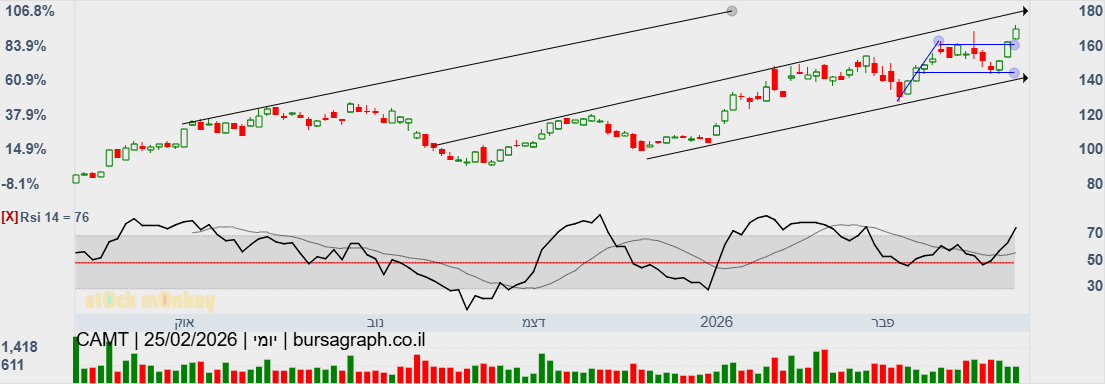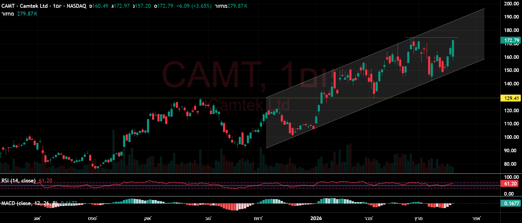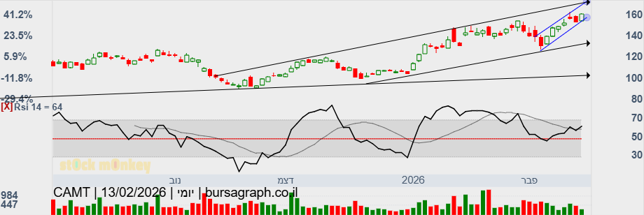 קמטק ממשיכה לטפס ומגיעה במסחר בניו יורק לשיא חדש של 171.96 דולר וגם בארץ היא מגיעה לשיא של 53170.