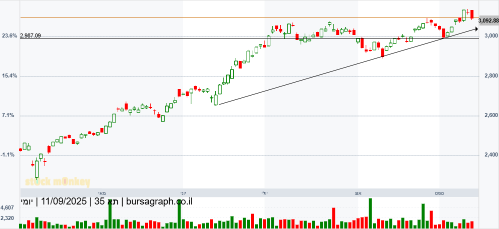 מדד ת"א 35 נסוג ב-0.8% מרמת שיא ; חלל תקשורת צונחת ב-7.5% ברקע לקשיים בהשלמת ההסדר חוב; טריא משלימה מהלך עליות של 46% השנה