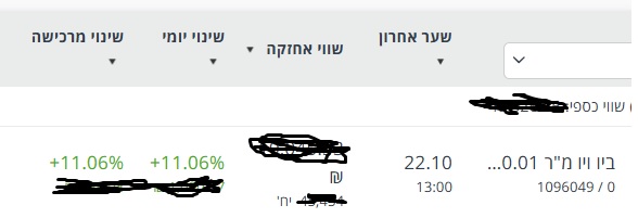 חזרתי להשקעה במניה ביו ויו29.1 ירידה של 4%