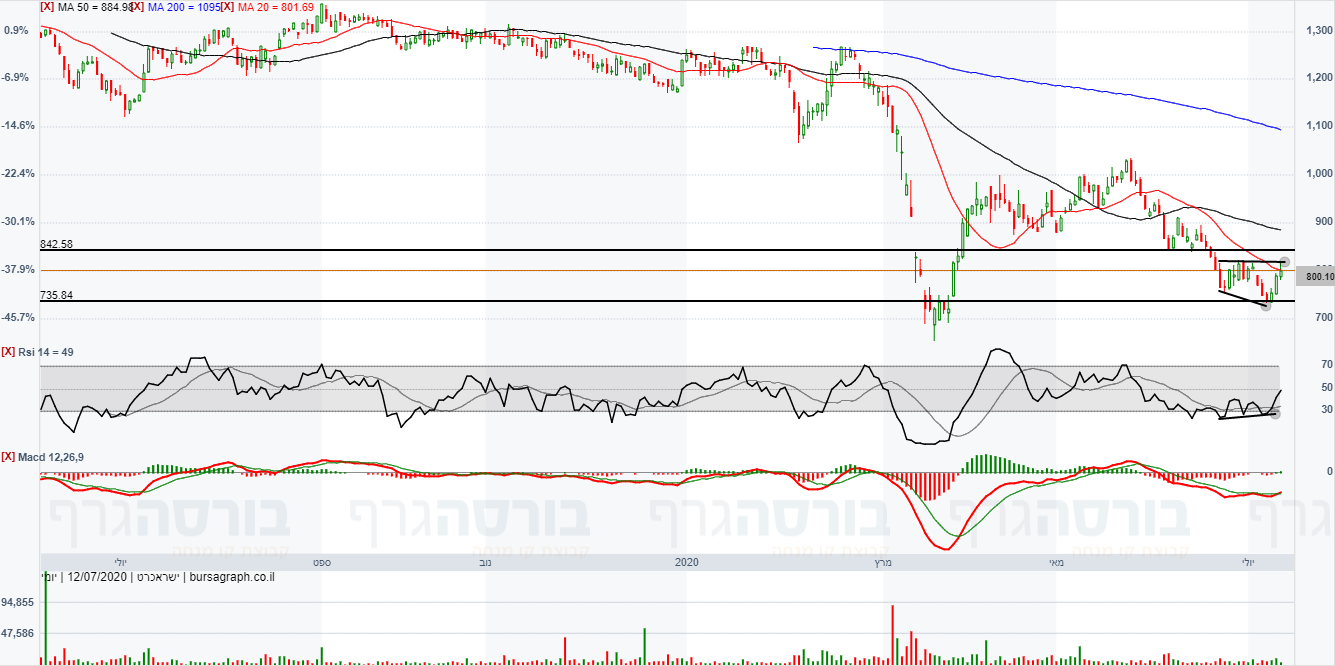 עם סטייה חיובית קלה ( על הקסקס). מעל 820~/840 בשביל זה. טכנית בלבד, מגמה יורדת שם יש לציין.
