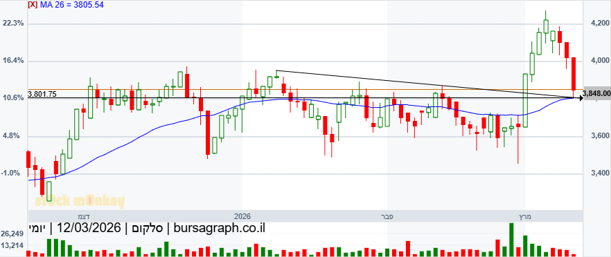 מעל הדגל עצמו, אבל זה לא נראה טוב! גם יום לפני הנר נחתך לצי ולא הצליחה לחזור לשיא. הכל שם גם תלוי בעסקה הזאת שאולי לא תאושר. לדעתי מוקדם מידי החגיגות בענף הזה, אפילו שבבזק אני מחזיק עדיין והגרף שם בפיבונצ'י מצוין