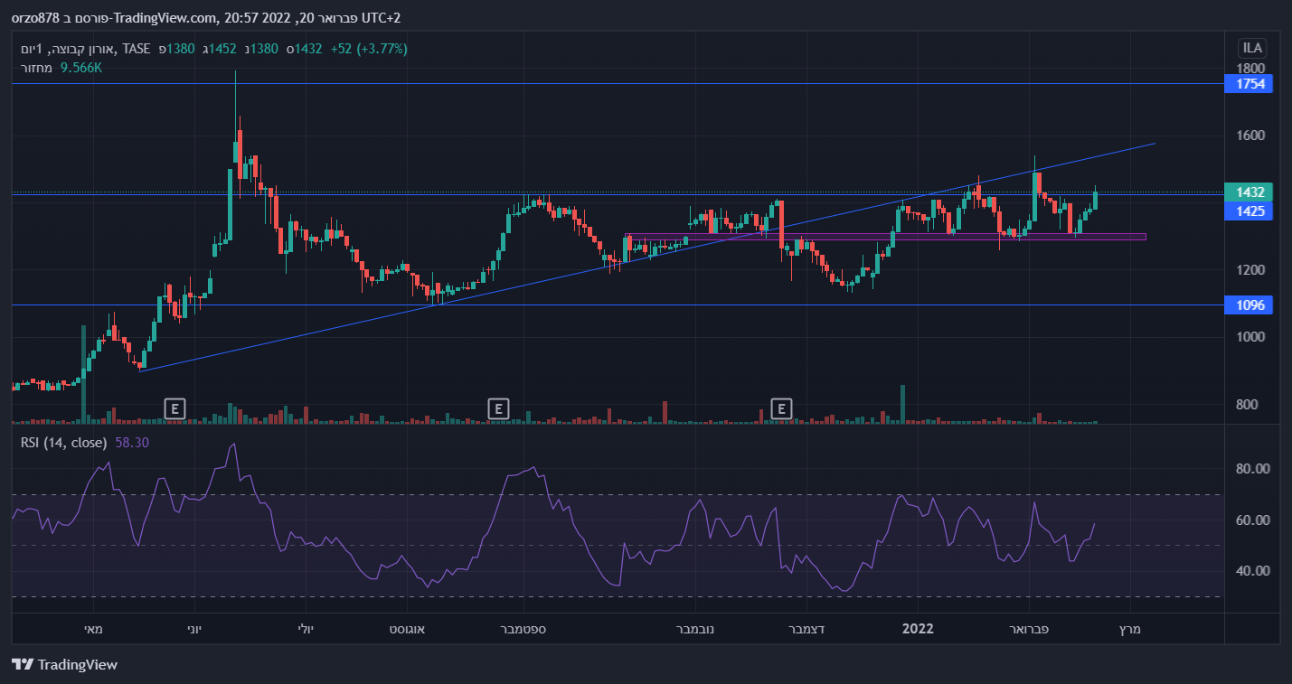 המגמה העולה שציירת. חוץ מזה שאם היא תצליח להתבסס מעל 2-3 ימי מסחר מעל 1430, זה סימן חיובי מובהק וזאת תהפוך להיות תמיכה משמעותית. סה״כ למי שבפנים אני חושב שיש סיבות לאופטימיות אבל אין לי כוונה להיכנס אליה כי סה״כ הגרף שלה לא מפתה ואין שם מגמת עליה ברורה.