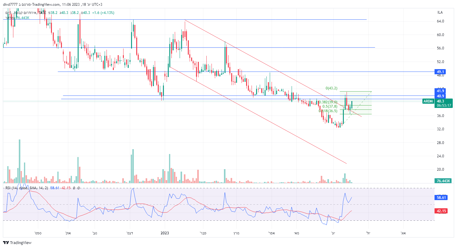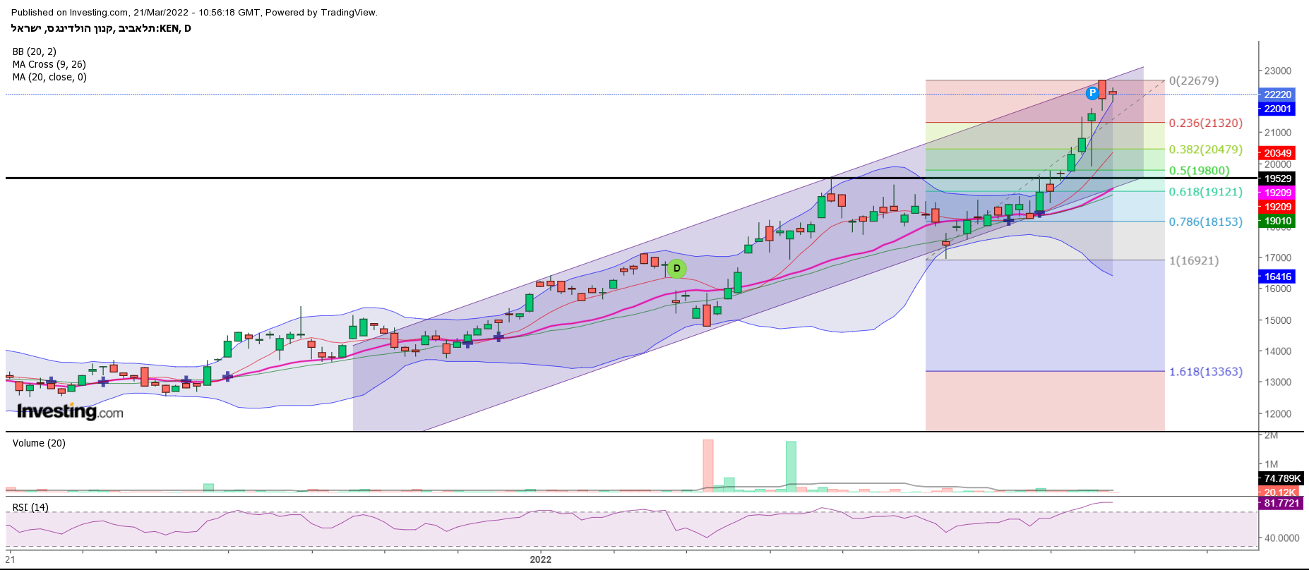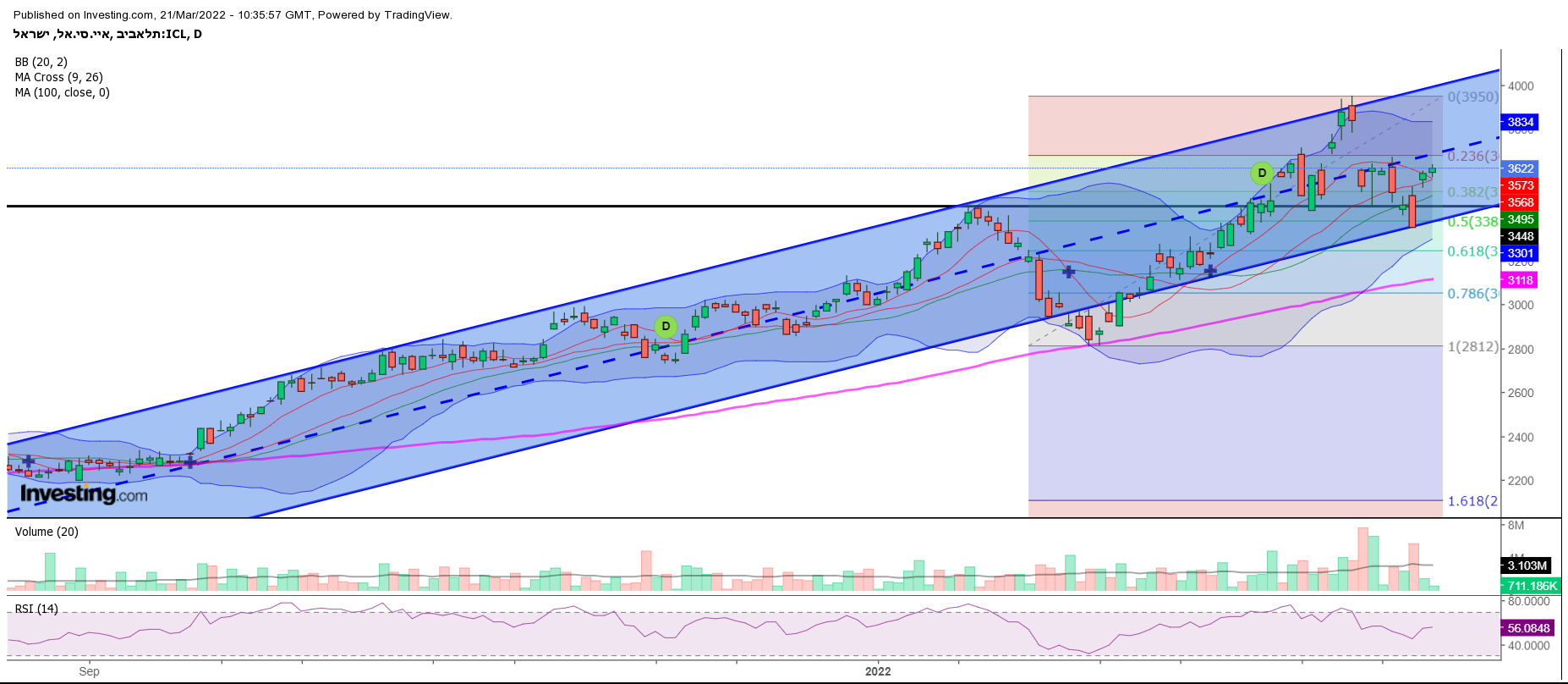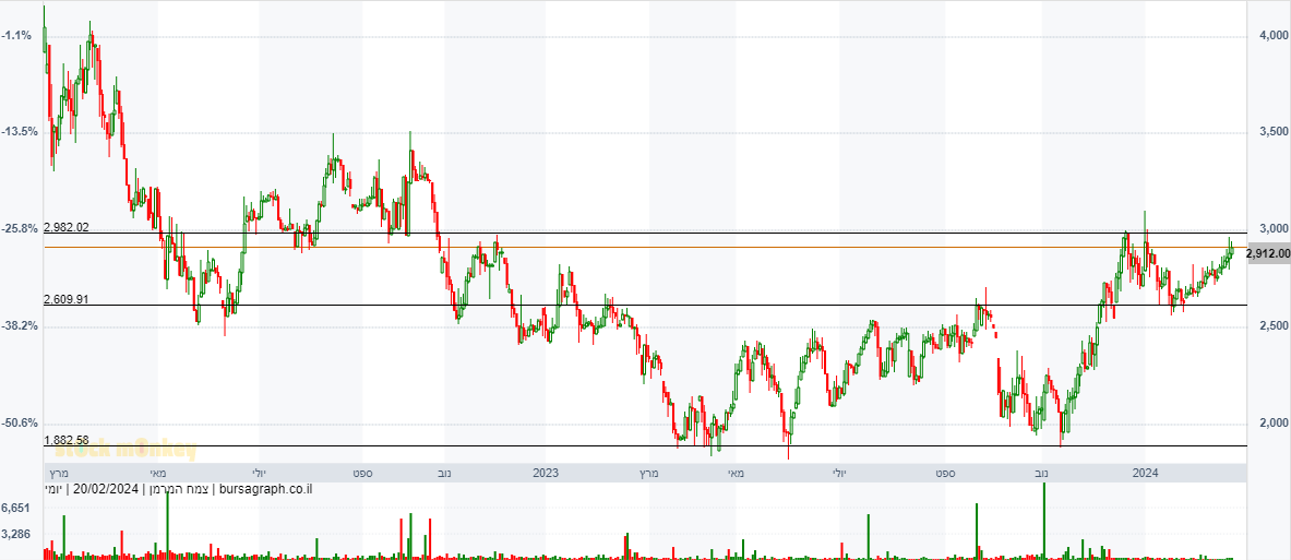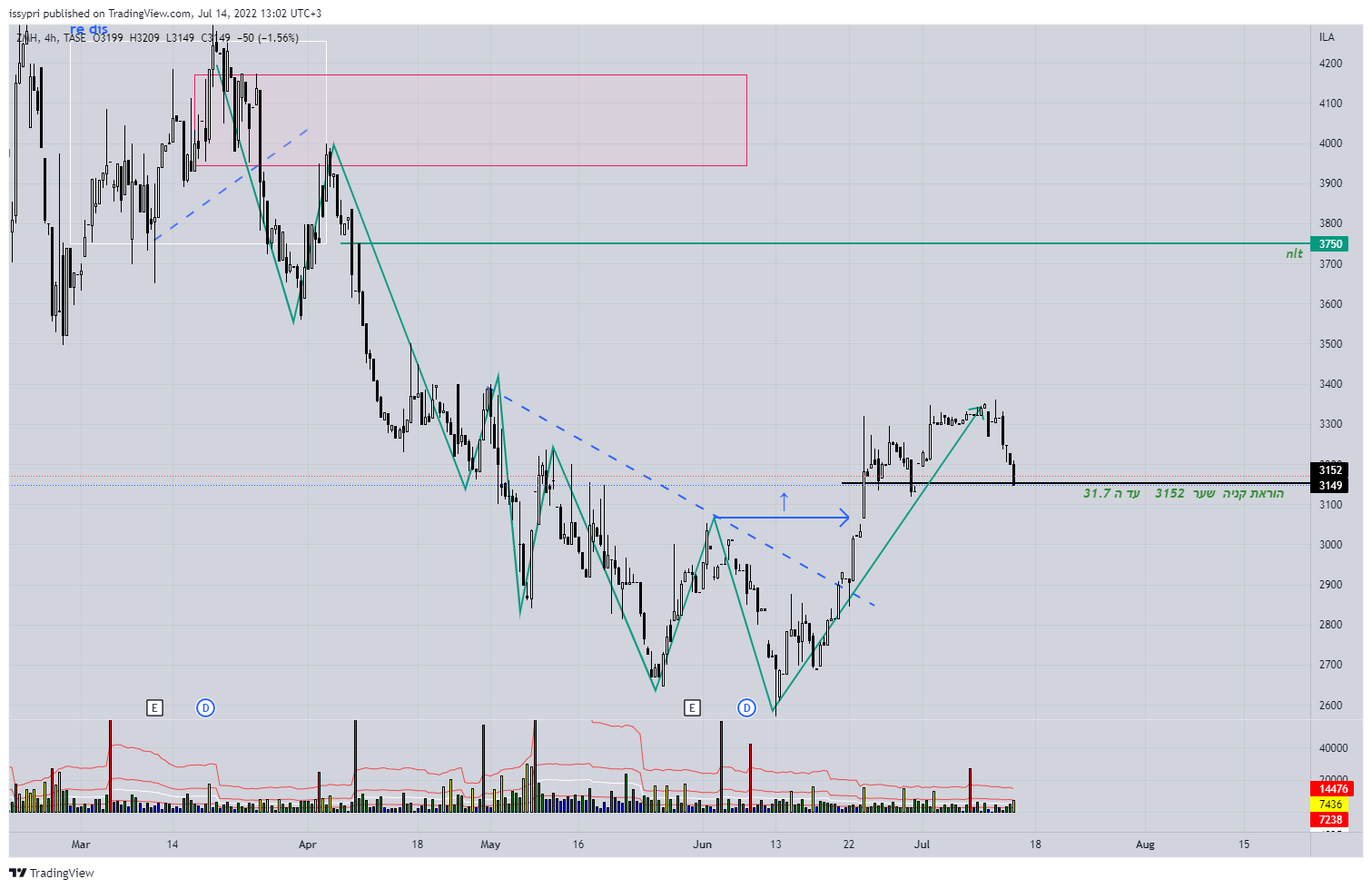 בקצה התעלה (שלחתי גרף ב15.3.22 בפעם האחרונה). כעת היא חווה מימוש. שמתי סרגל פיבו' על מנת לקבוע גבולות גזרה לתיקון. שימו לב לרמה מעניינת מאוד (שלדעתי לא נראה בקרוב אלא אם יהיה מימוש רחב בשווקים!): יש צומת בין מ"נ 20+ פיבו' 61.8+ קצה תעלה עולה!! אם הנייר יירד ל19200~ אני אשלש כמות כי משם חייב לבוא היפוך לדעתי... זאת כרגע הכניסה עם יחס הסיכוי/סיכון הכי גבוה (שלחתי פקודת GTC לחודש הקרוב) לטעמי... גם הנייר הזה הוא קרקע יציבה עד סוף השנה לפחות לדעתי. פשוט לדגור בבטחה (אלא אם משהו ממש מפתיע יקרה בעולם ומשבר התובלה יסתיים בלילה אחד)...🤞