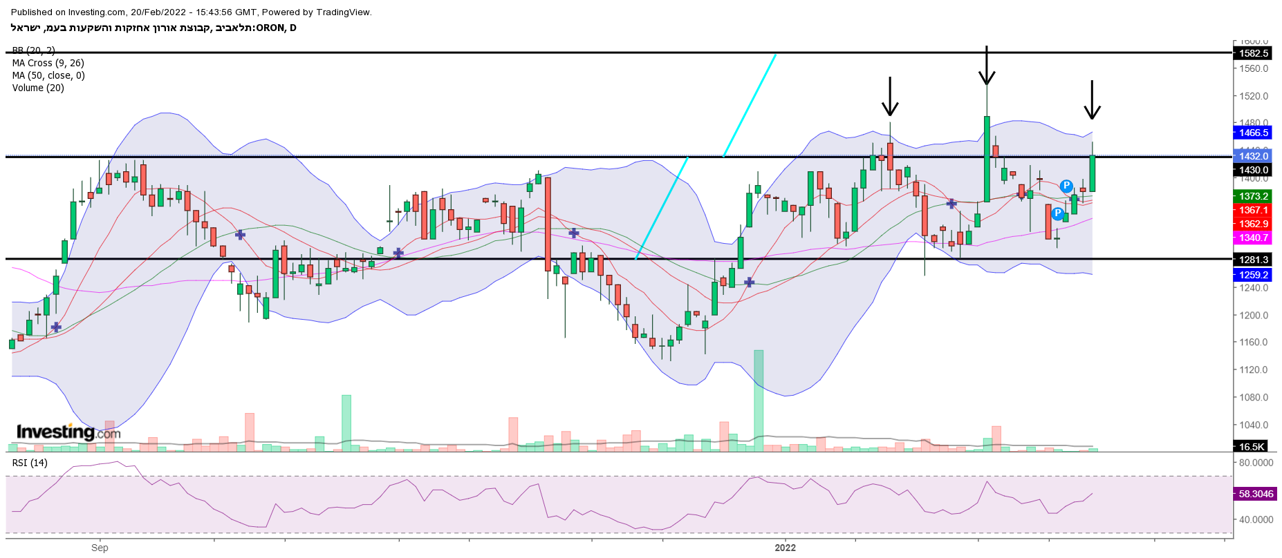 לא מחזיק אבל מעניין לראות האם הפעם תצליח להתבסס מעל 1430 נק'. בפעמיים הקודמות זה לא הצליח לה והיא חזרה מהר מאוד לרדת. היום סגרה 1432 נק' ביום אדום בשוק, אז אולי זה היה היום שלה... אם תמשיך צפונה מחר, אמורה להשלים יעד תבנית לאזור 1580 נק'. בהצלחה למחזיקים....😛