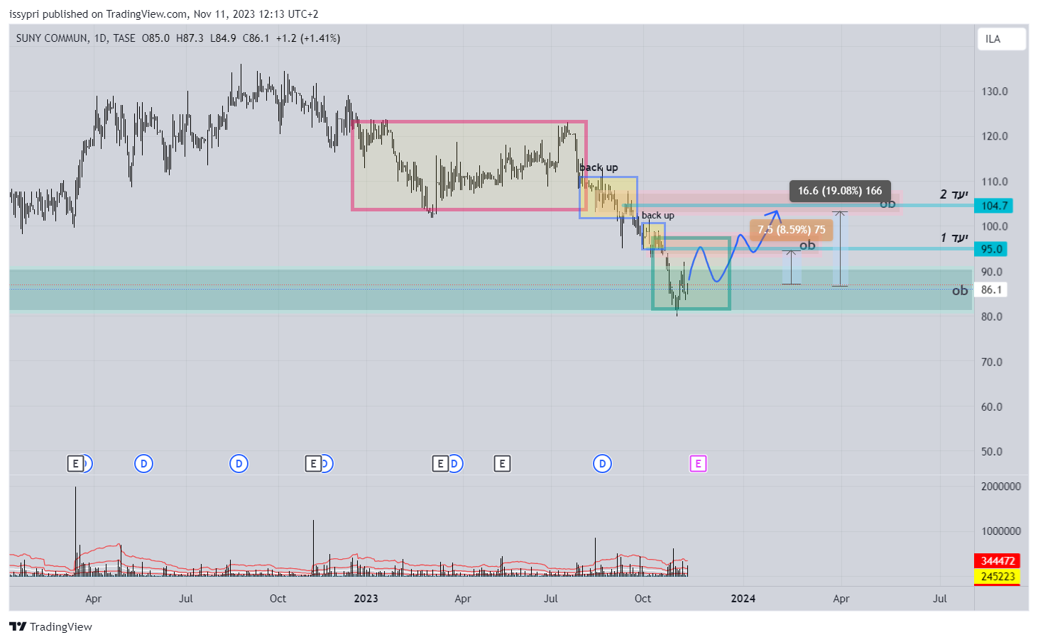 (האמת? מצב כזה מעניין בנייר לא ראיתי לאחרונה, אז לדעתי שווה לעקוב גם מי שלא מחזיק כדי לראות התנהגות, מומנטום וקצת לצבור ניסיון...) מצד אחד: 1. מדד הנדלן נראה חלש לאחרונה וזה לא חידוש. 2. תעלה יורדת מאז הפסגה מאמצע ינואר. מצד שני: 1. אי אפשר להתעלם מהנר הירוק הענק שהיה שבוע שעבר- נכנס שם המון כסף "חדש". 2. יתכן והנייר בונה דגל שורי (מהימנות לא בשמים כמו שרואים בציור). 3. התכווצות של המחזור בזמן הירידות ב-3 ימי המסחר האחרונים. 4. אם אכן הדגל ייצא לפועל אז אמורה לפרוץ תעלה יורדת וזה כבר סיבה לצאת במחולות למי שמחזיק... 5. מ"נ 100 (סימנתי בחץ שחור) מחזיק די טוב את הנייר. ראינו תנועה חדה מעלה ברגע ששברה אותו בליווי גידול במחזור. מי שבחוץ: לדעתי אפשר לקחת מנה עם סטופ על מ"נ 100 ואחוז סיכוי/סיכון סביר. כמובן שאם הסקטור יילך להמשך ירידות אז כנראה שהתרחיש השלילי יותר סביר, אך נראה לי שהיא מחפשת לעלות... ג"נ: מחזיק מחצית מהכמות המקורית שמבחינתי שווה את הסיכוי/סיכון כרגע... ללא המלצה מעבר לכך!🤞