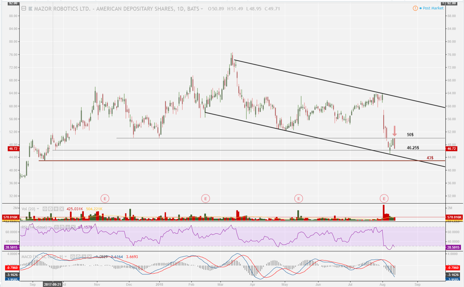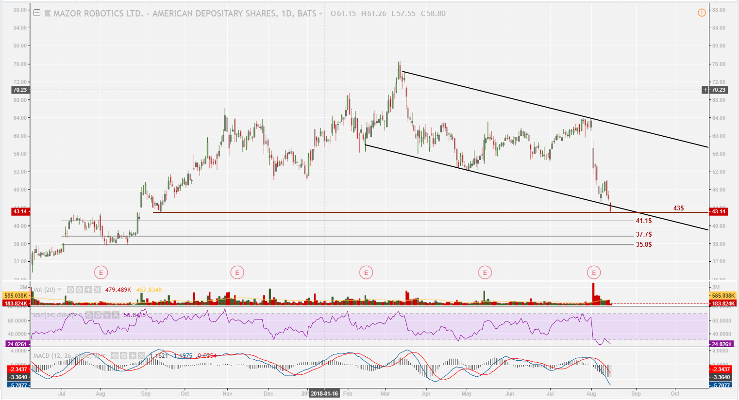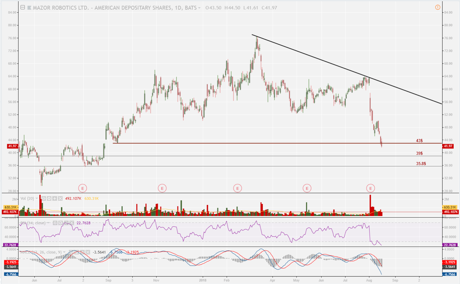 לשער הארבעים דולר אותם צפיתי. כל חששותי מהחברה התאמתו בדוח האחרון, מדטרוניק שינתה את כל המודל העיסקי של החברה וכרגע לא רק שלא רואים שיפור קיימת הרעה. קיטון בהכנסות, בשיעור הרווח הגולמי, חוסר שקיפות למערכות שמותקנות ונמכרות. פשוט הפוך ממה שהמשקיעים היו רגילים מהחברה. חודש הבא צפויה השקה של מערכת משודרגת אבל גם זה לא ישפר את התוצאות בטווח הקצר ולדעתי השינוי והצמיחה המחודשת תחל ב-2019 אך הגידול והצמיחה שהיה ב-2017 כנראה ולא יחזורו. במצב היום קשה להעריך לאן תמשיך המנייה והחברה ואני לא רואה עדיין את המפנה ואירועים מהותיים שיציתו תקווה מחודשת במשקיעים. היום איני מחזיק במניה וממתין להתפתחויות או לשערים נמוכים יותר 35-40$ שבהם רמת הסיכון תרד. לטווח ארוך אין לי ספק שהחברה תמשיך לעלות ואף תשבור את השיא שלה אך עדיין לא הגיע הזמן מבחינתי להשקיע מחדש בחברה. מזור רובוטיקה רו
