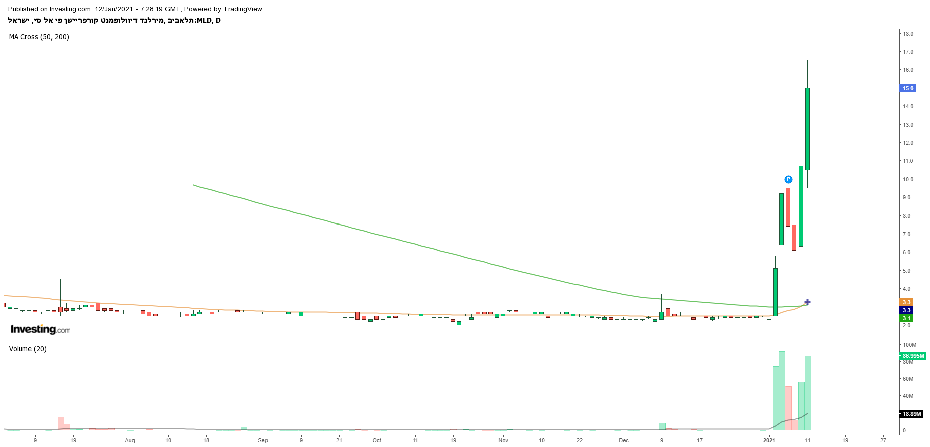 מירלנד טרום נעילה עולה 1100% יש הודעה?