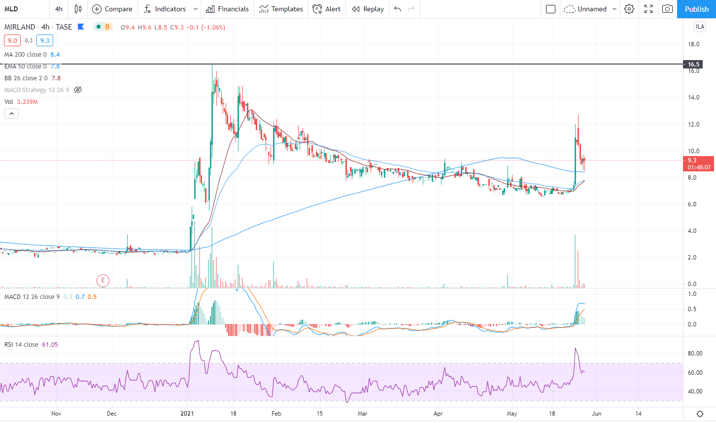 מירלנד עולה 15% לשער 8.2 , למעקב, מ