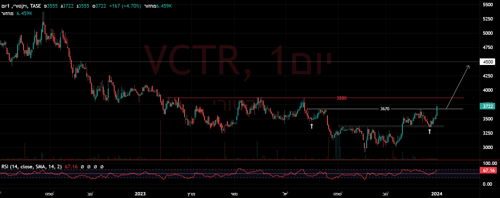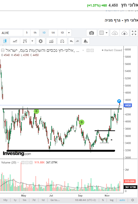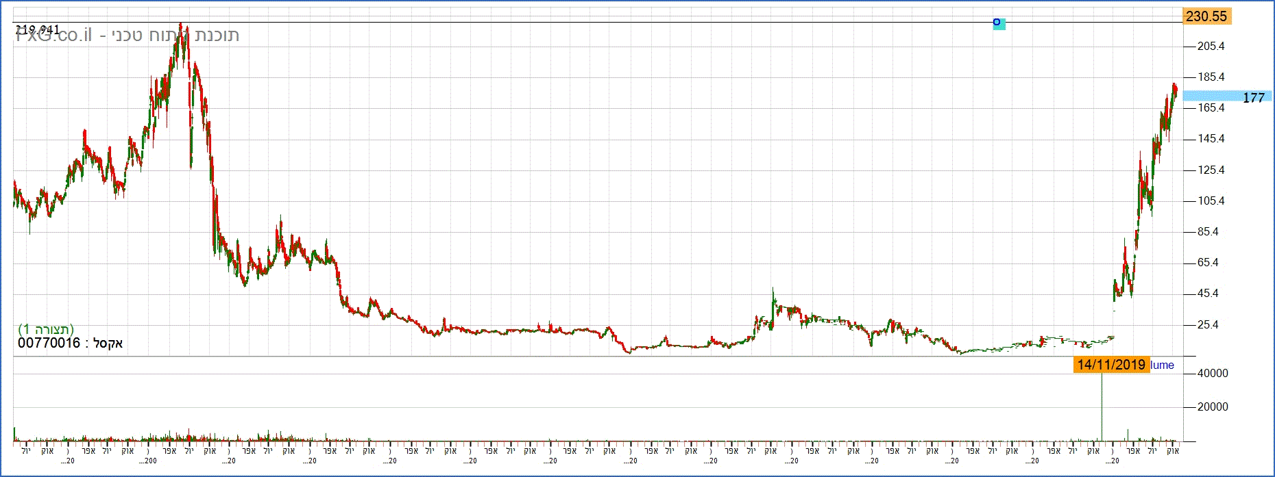 הוא מהיותר סקסיים שהיו בבורסה. בתחילת השנה קניתי הרבה מהמניה באזורי 9 שח למניה כי היא הייתה נראית לי מאוד זולה וגם כתבתי פה על כך (יש לינק). כמעט שנה שלמה היא הוציאה לי את הנשמה עם הדשדוש שלה - עולה קצת חוזרת למקום וחוזר חלילה. אבל החזקתי מעמד ולא איבדתי סבלנות ופתאום החודש המניה עלתה על טיל רק כיוון אחד. כל יום עולה 3-4 אחוז ולא מביטה אחורה. לקח? אם אתם משוכנעים שהמניה זולה, תחזיקו מעמד זה בסוף בא כמו טיל ובפרק זמן קצר מאוד.