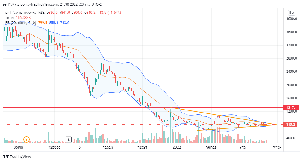 בולינגר מכווץ מאוד,כנראה שתנועה חדה בפתח,רובנו מקווים שזה יקרה לכיוון הנכון. המחזור היום גבוה יחסית לתקופה האחרונה,אולי יפורסם משהו אצל הדבורה. בהצלחה למחזיקים. מחזיק כמובן.👍