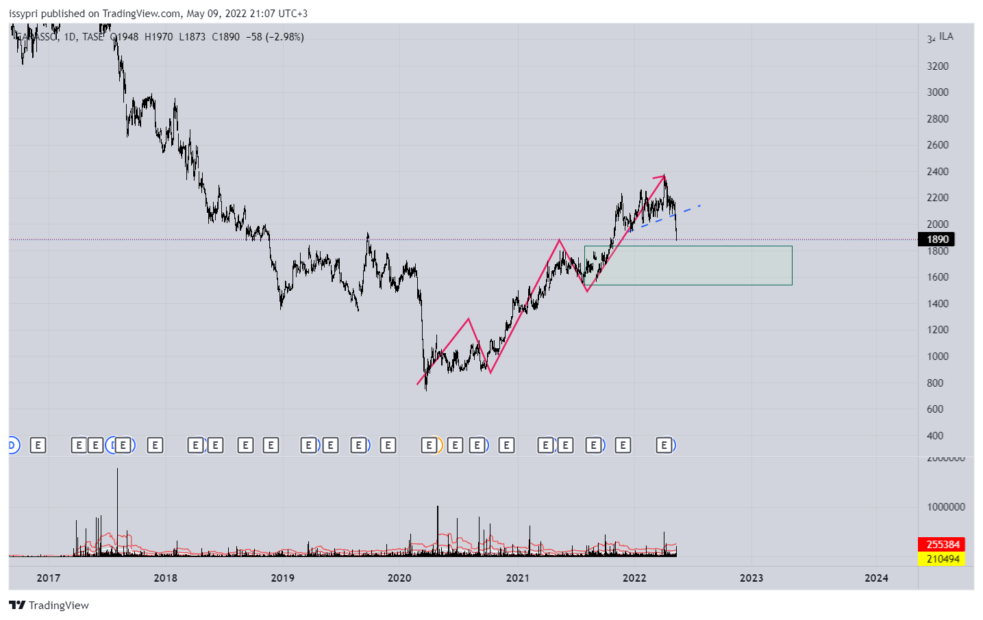בזה בהמשך הדרך. מדובר על גל עליות שהחל ממרץ 2020 ודחף את המדדים לעליות חדות של למעלה מ--100 אחוז מהשפל. מאז נגעו בשיא המדדים יצאו לתיקון שהנאסדק יורד ב-30 אחוז משיאו. זה קורה בצורת גלים דוחפים וגלים מתקנים כפי שמסומן על הגרף. בחודש וחצי האחרון המדדים יצאו לגל יורד משמעותי וכעת לפחות על הנייר ישנה ציפיה לרגיעה מסויימת ותיקון עולה,כל זאת במגמה יורדת. לשם כך: בראש ובראשונה נדרשת תמיכה אולטימטיבית של המדדים לשפל של אתמול. אני מניח שאם התיקון יימשך הלאה, איזור התמיכה 4150 במדד האסאנדפי יהפוך להתנגדות. שורה תחתונה: רצו תיקון, המדדים חטפו, מניות שהכזיבו קרסו, מי שלא עיצבן את השוק ירד. האם התיקון נגמר,נדע בדיעבד. ומגמת הלונג בסופו של דבר תנצח,יגמרו את הסייקל היורד הזה וימשיכו הלאה. דעה ולא המלצה