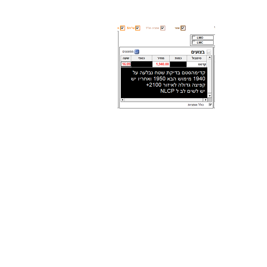 ויש שם מישהו שפשוט כל הזמן מדביק אותה לגבוהים. הפער בין קונה מוכר שם הוא גדול וכשמישהו זורק סחורה והופך אותה לאדום הקונה ההוא ישר תוך דקה שתיים מחזיר אותה חזרה. גם המחזורים גדלו שם בזמן האחרון וכרגע גבוה שנתי. מעניין אם יש שם משהו שמישהו יודע