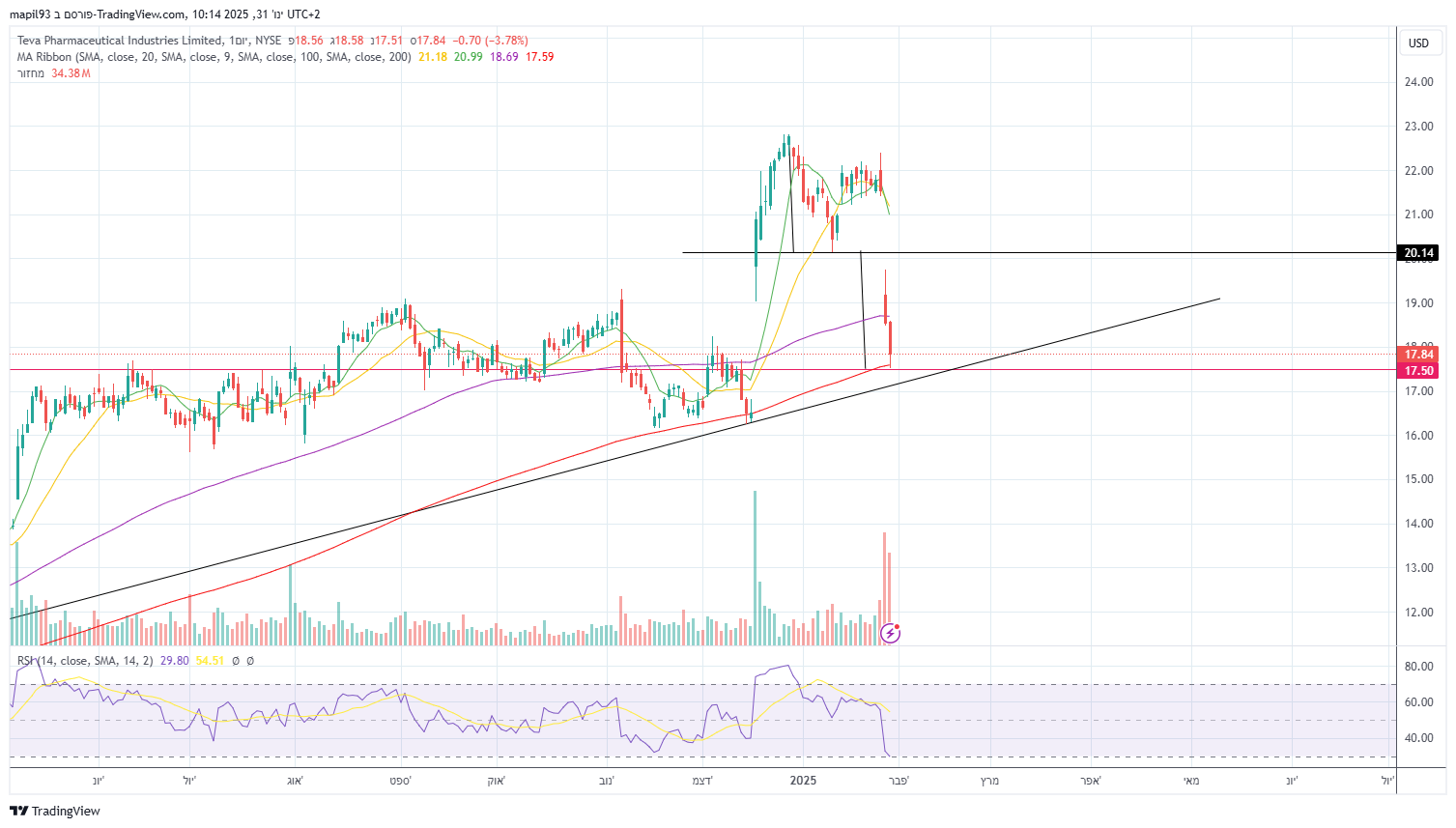 ממוצע 200, קו תמיכה ארוך טווח, ספל ידית הפוך. מקום טוב לחבור אליה מה גם שהדוח היה בהחלט טוב רק התחזית בעייתית אבל עושה רושם שעברה מבונקר להתקפה.