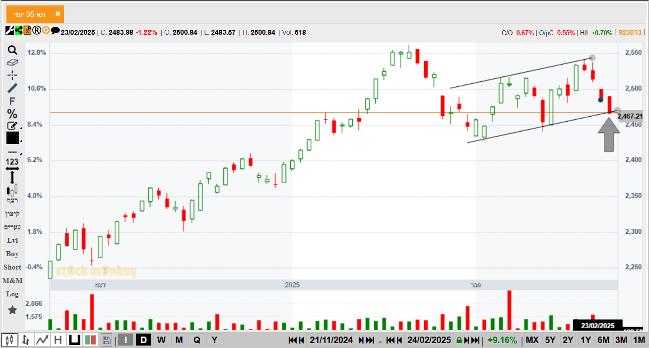 מראה רק על חצי אחוז ירידה [כמובן בזכות ההגנות] אין צורך לפחד השוק כאן חזק הרבה יותר מחו"ל ככה אני רואה אותו